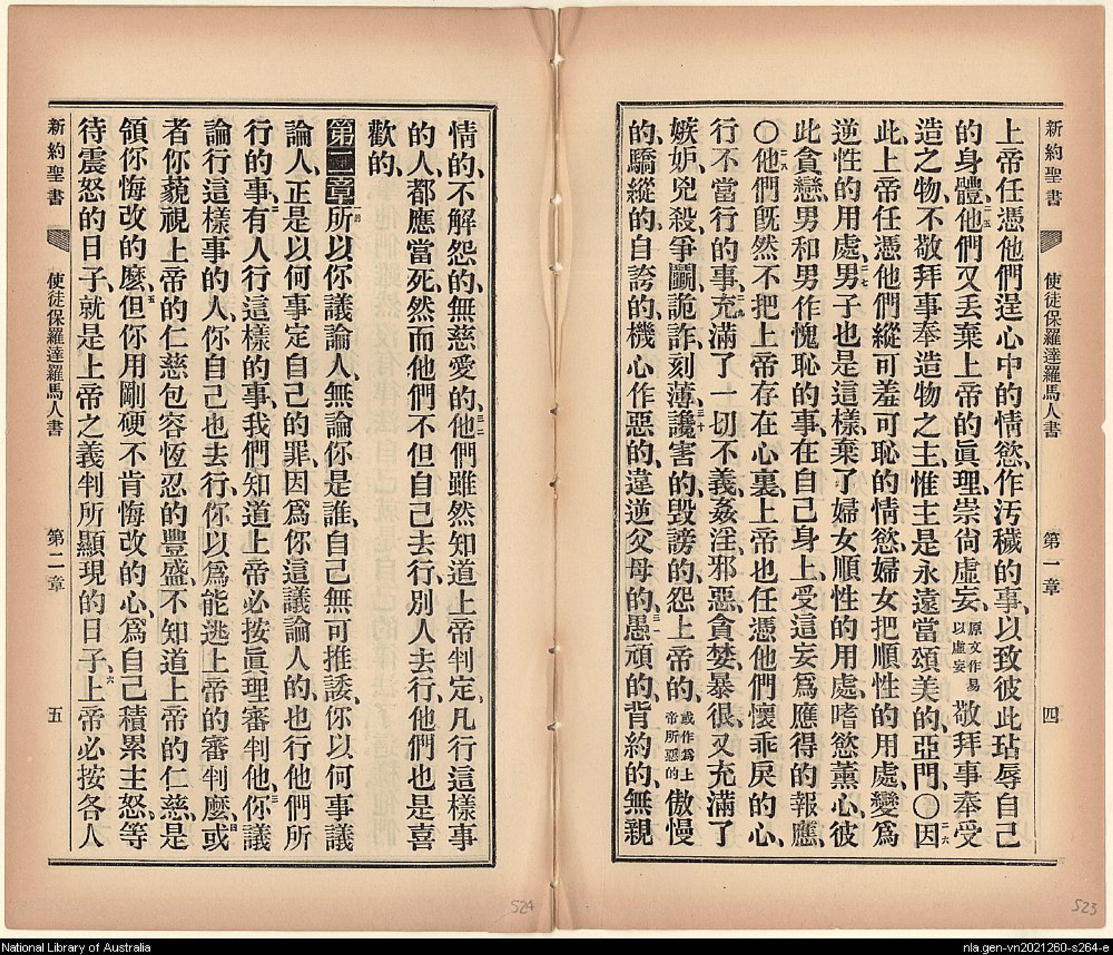 1903年新约全书 罗马书 1 章 24 节到 2 章 6 节