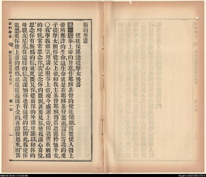 1903年新约全书 提摩太后书 1 章 1 节到 1 章 6 节