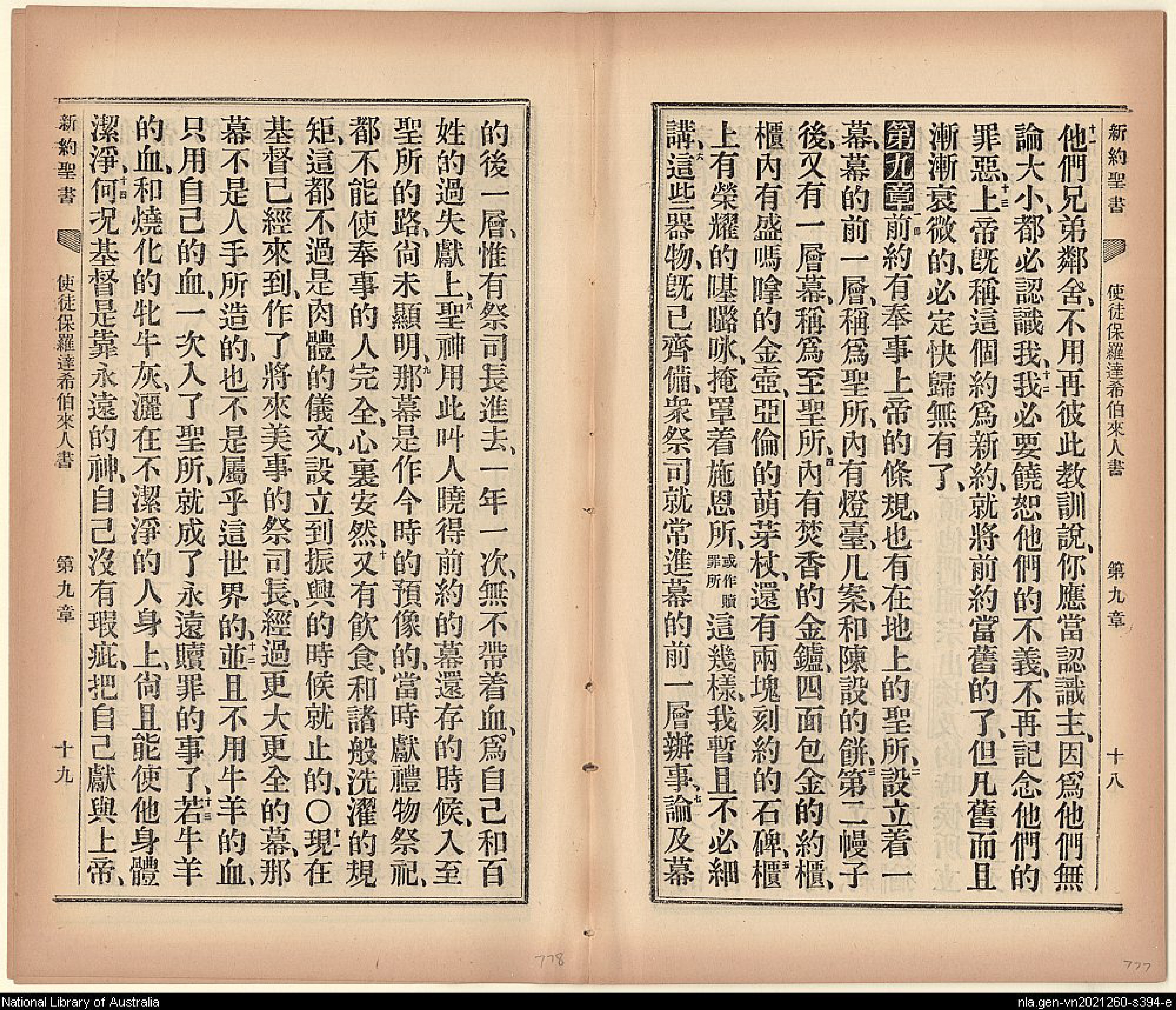 1903年新约全书 希伯来书 8 章 11 节到 9 章 14 节