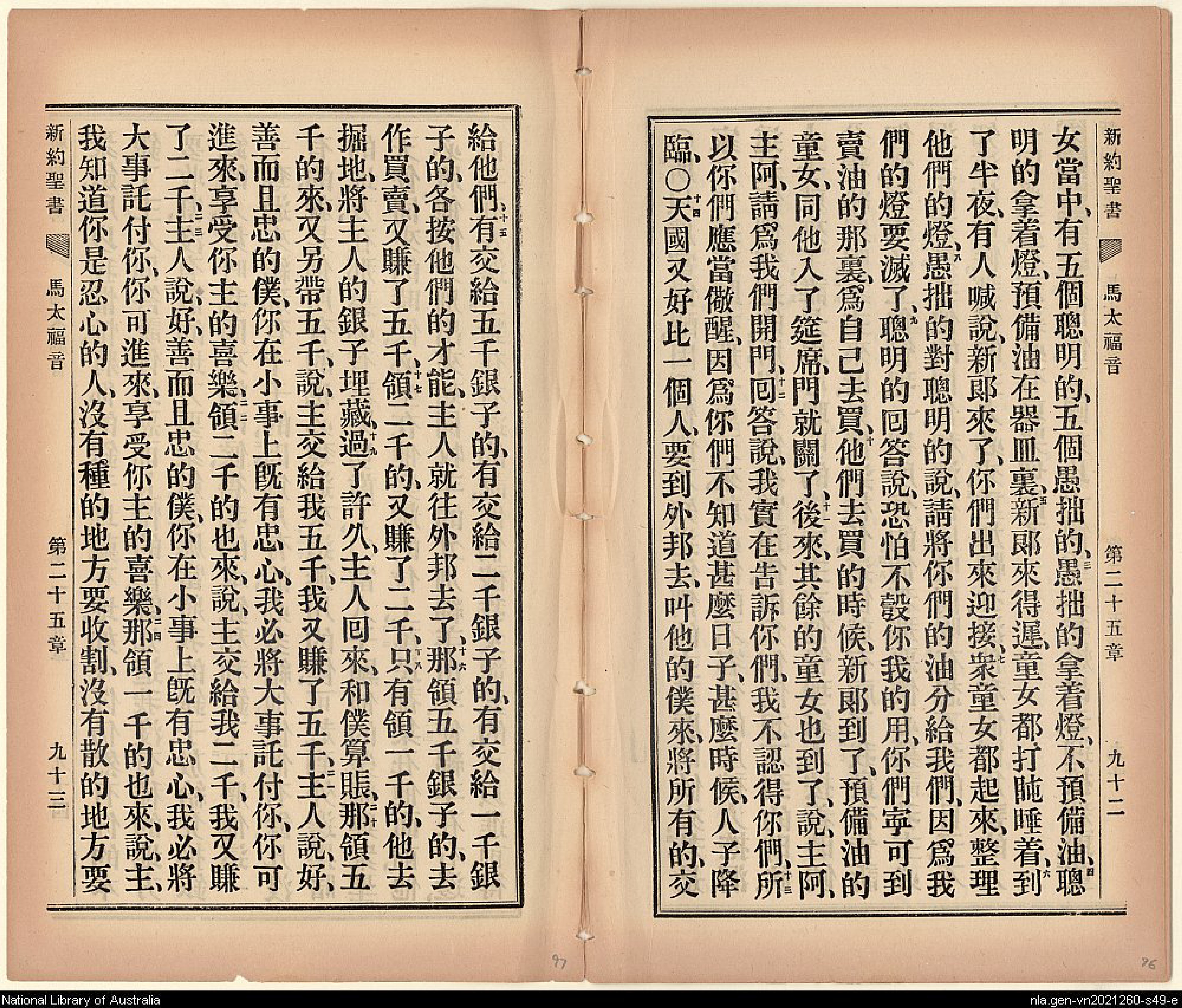 1903年新约全书 马太福音 25 章 2 节到 25 章 24 节