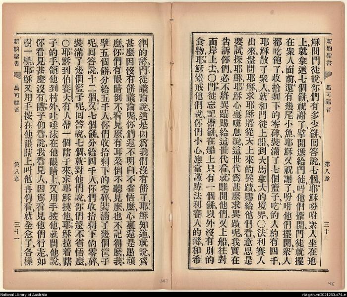1903年新约全书 马可福音 8 章 5 节到 8 章 25 节