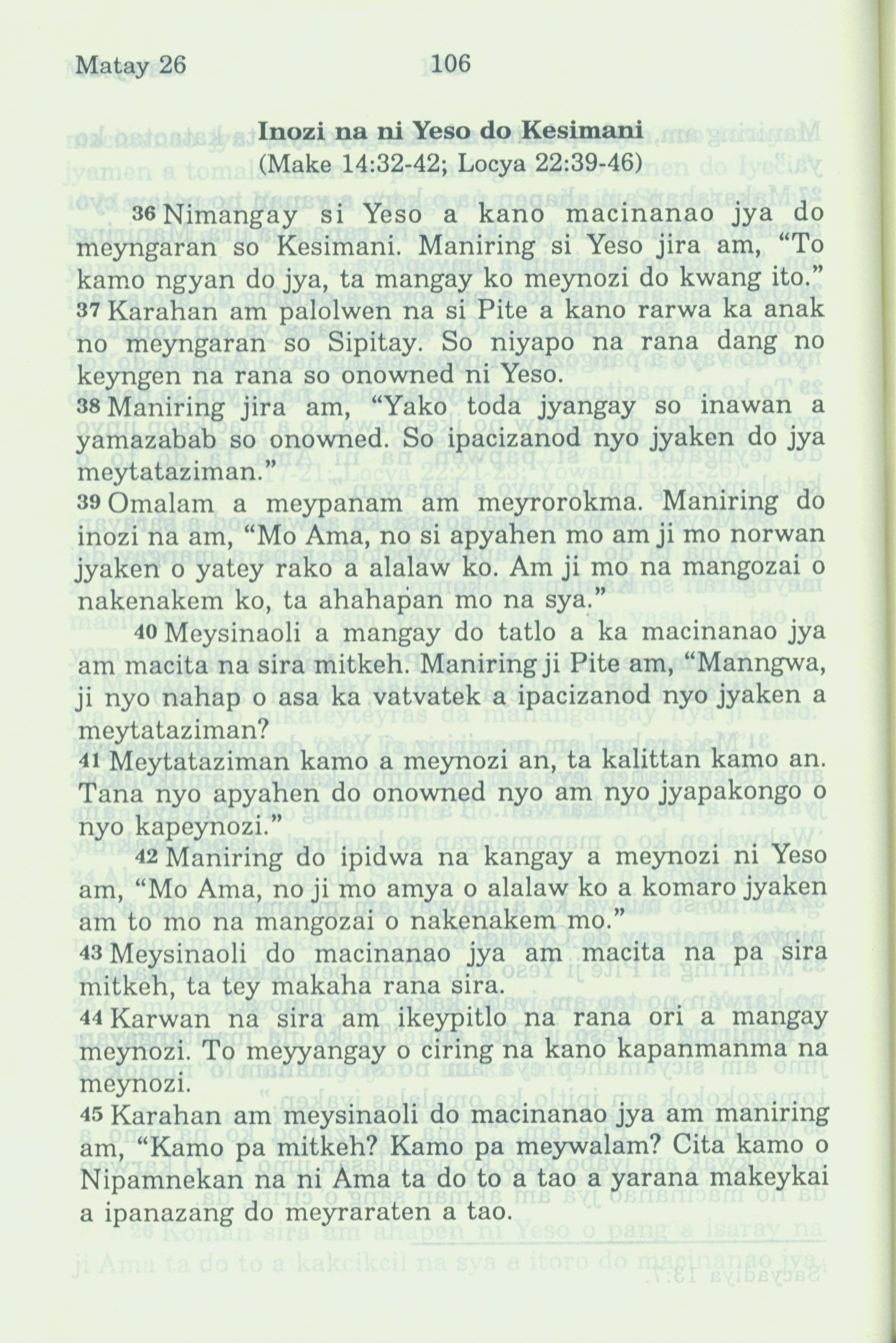1994年新约全书 马太福音 26 章 36 节到 26 章 45 节