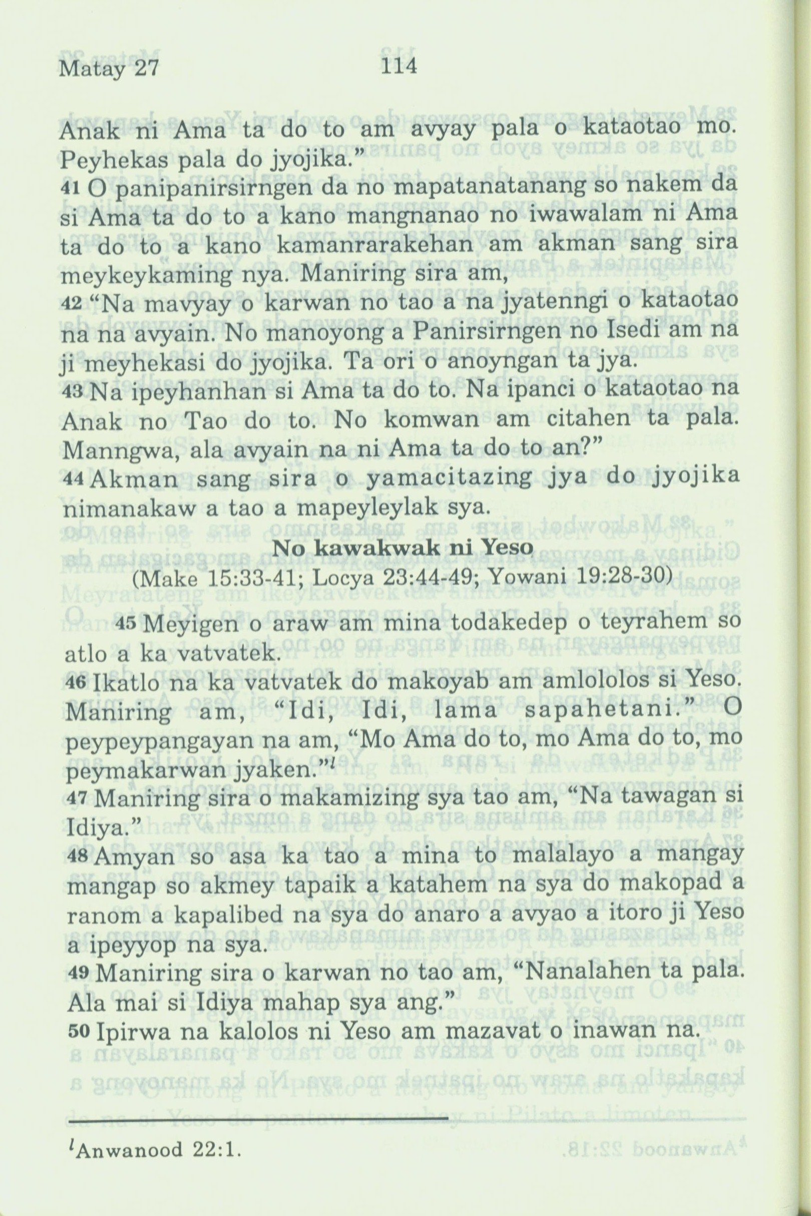 1994年新约全书 马太福音 27 章 41 节到 27 章 50 节