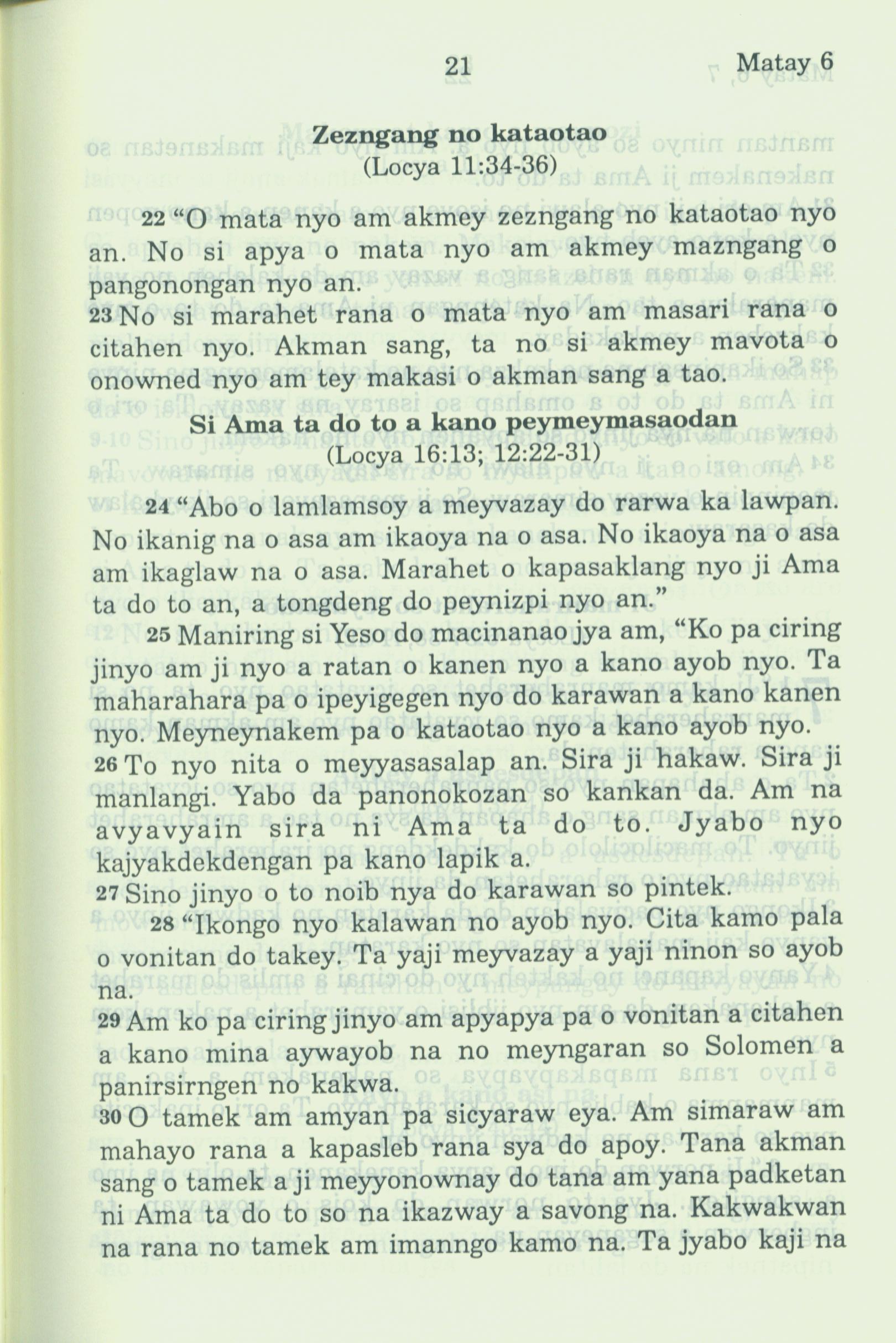 1994年新约全书 马太福音 6 章 22 节到 6 章 30 节