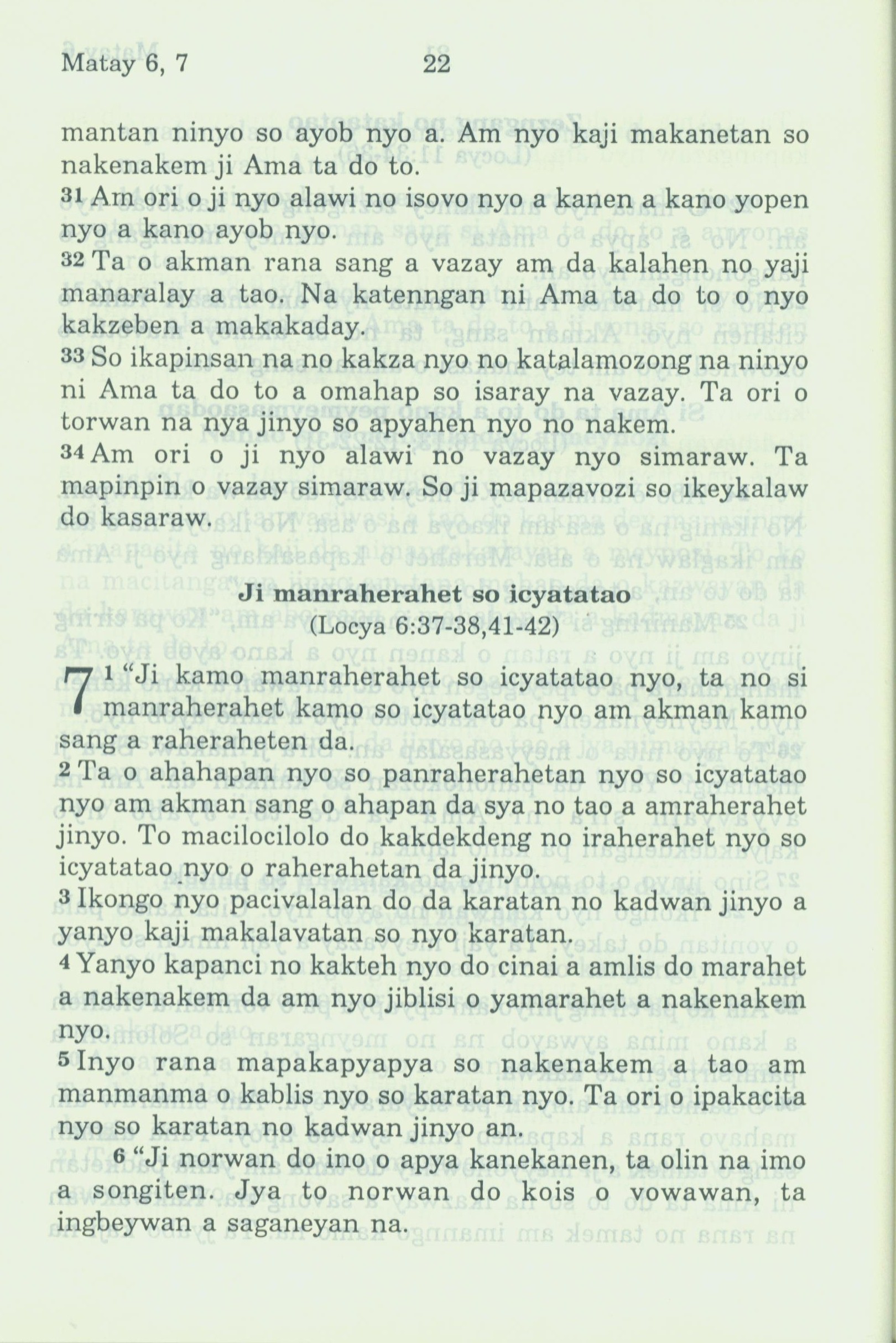 1994年新约全书 马太福音 6 章 31 节到 7 章 6 节
