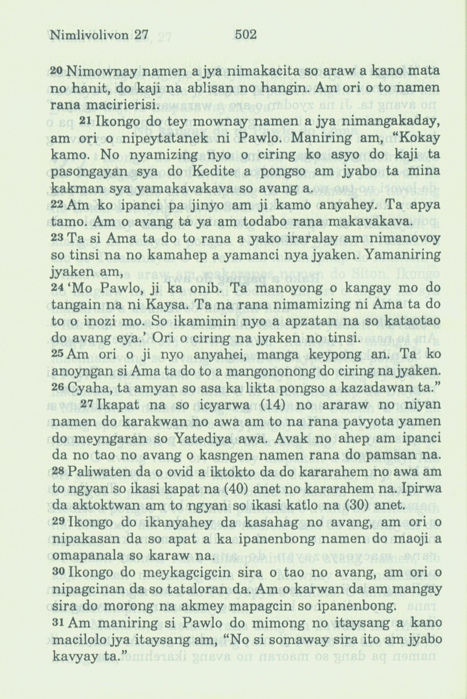 1994年新约全书 使徒行传 27 章 20 节到 27 章 31 节