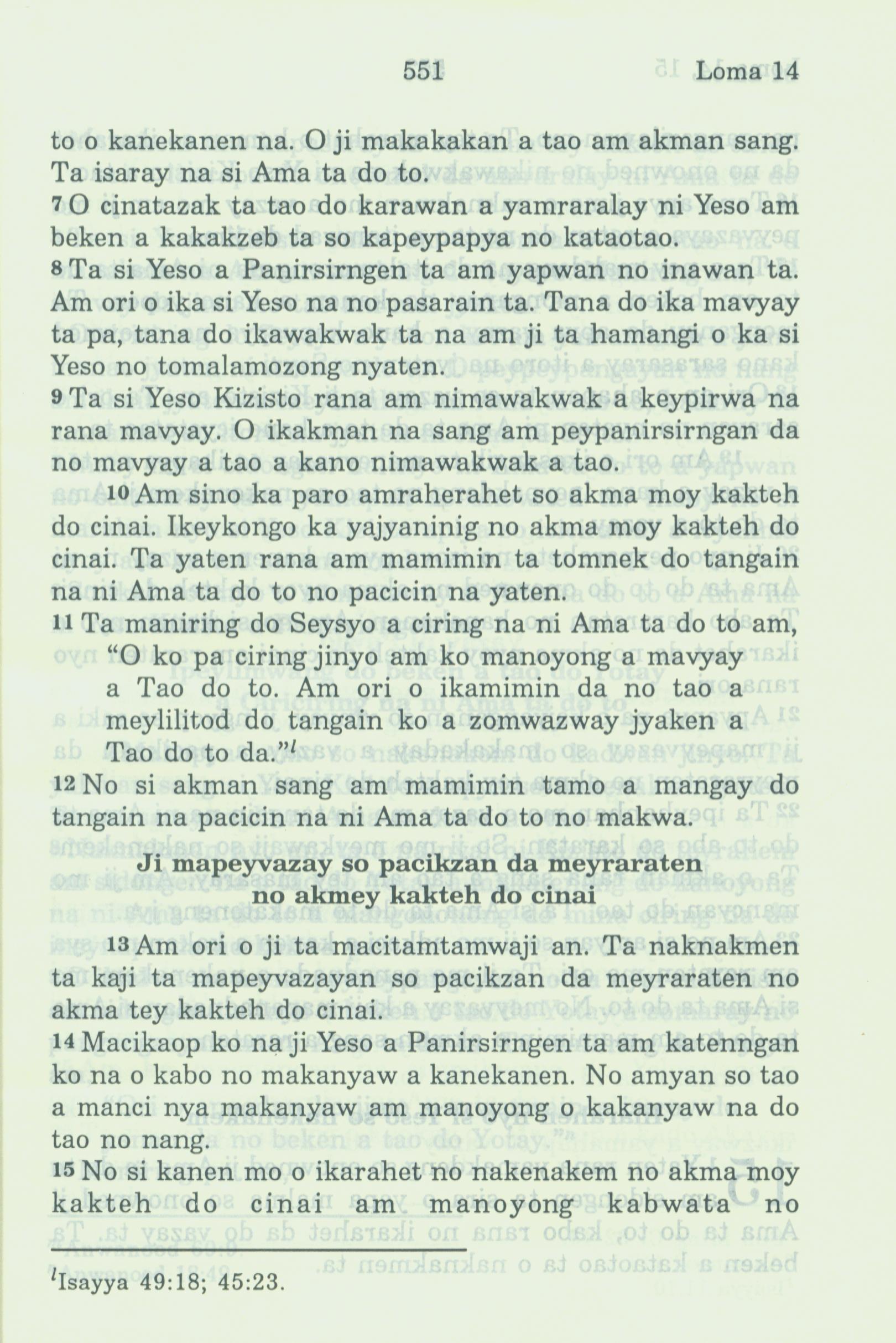 1994年新约全书 罗马书 14 章 7 节到 14 章 15 节