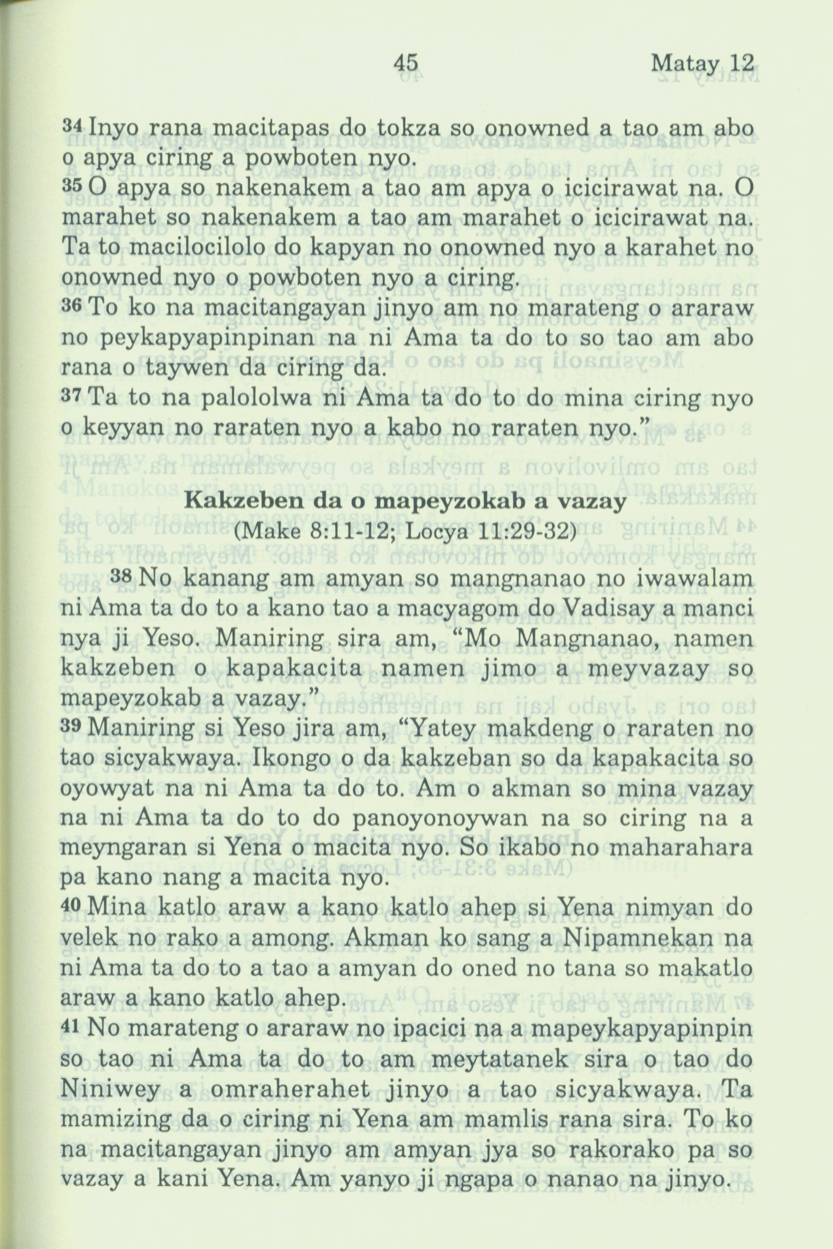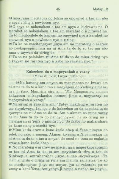1994年新约全书 马太福音 12 章 34 节到 12 章 41 节