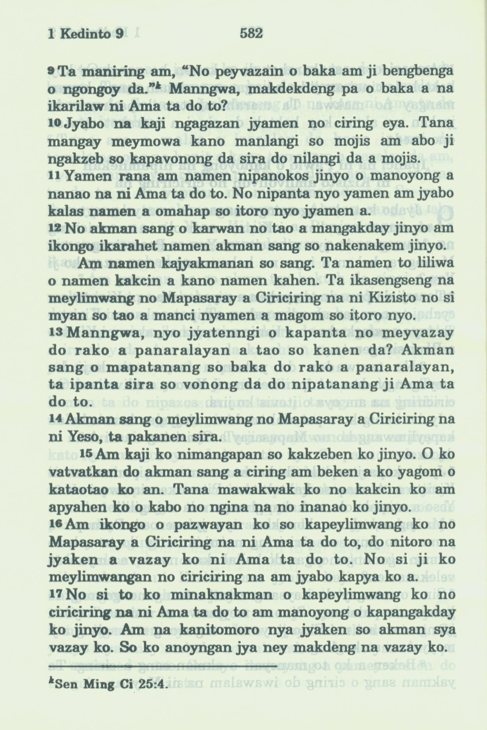 1994年新约全书 哥林多前书 9 章 9 节到 9 章 17 节