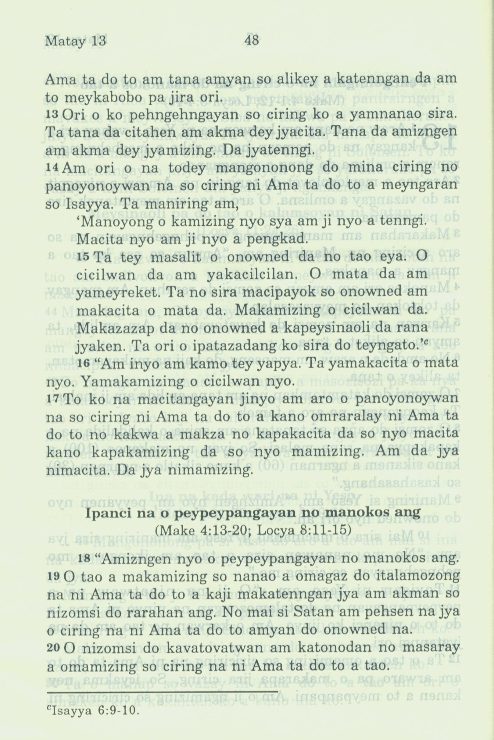 1994年新约全书 马太福音 13 章 13 节到 13 章 20 节