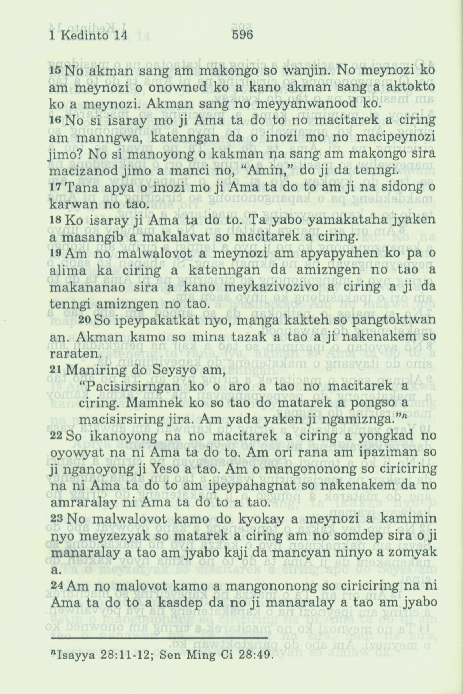 1994年新约全书 哥林多前书 14 章 15 节到 14 章 24 节