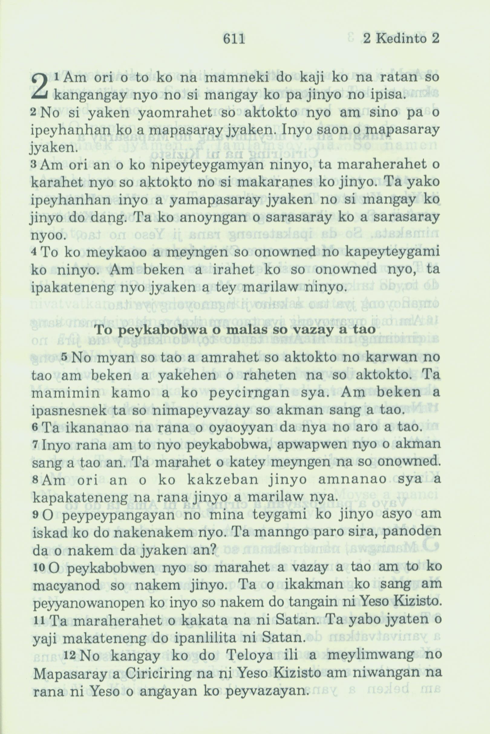 1994年新约全书 哥林多后书 2 章 1 节到 2 章 12 节