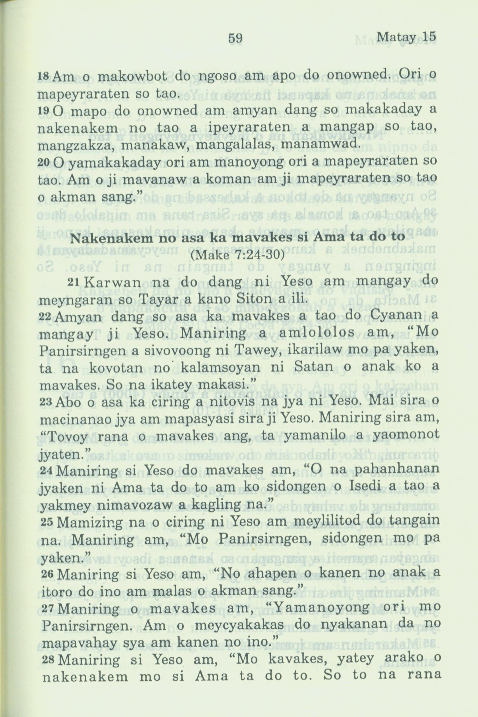 1994年新约全书 马太福音 15 章 18 节到 15 章 28 节
