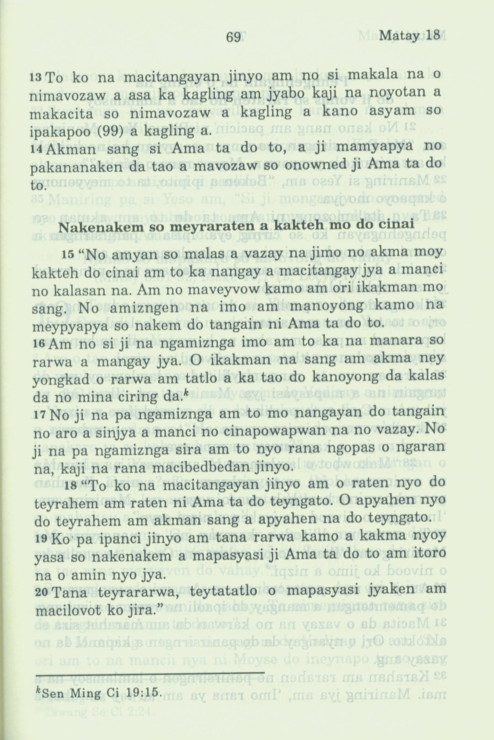 1994年新约全书 马太福音 18 章 13 节到 18 章 20 节