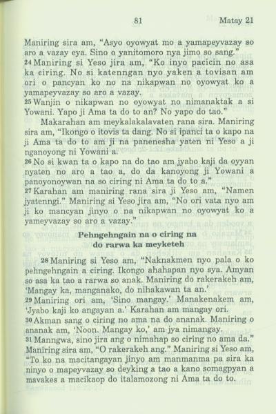1994年新约全书 马太福音 21 章 24 节到 21 章 31 节