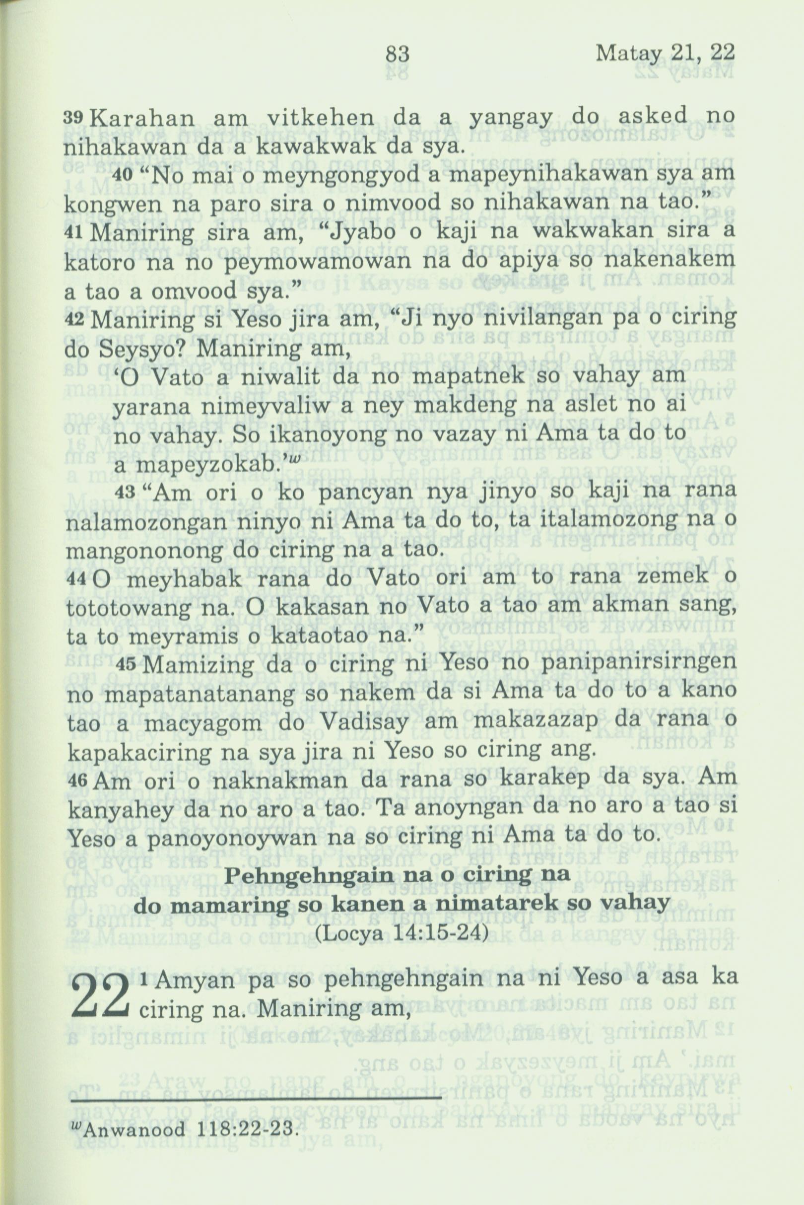 1994年新约全书 马太福音 21 章 39 节到 22 章 1 节