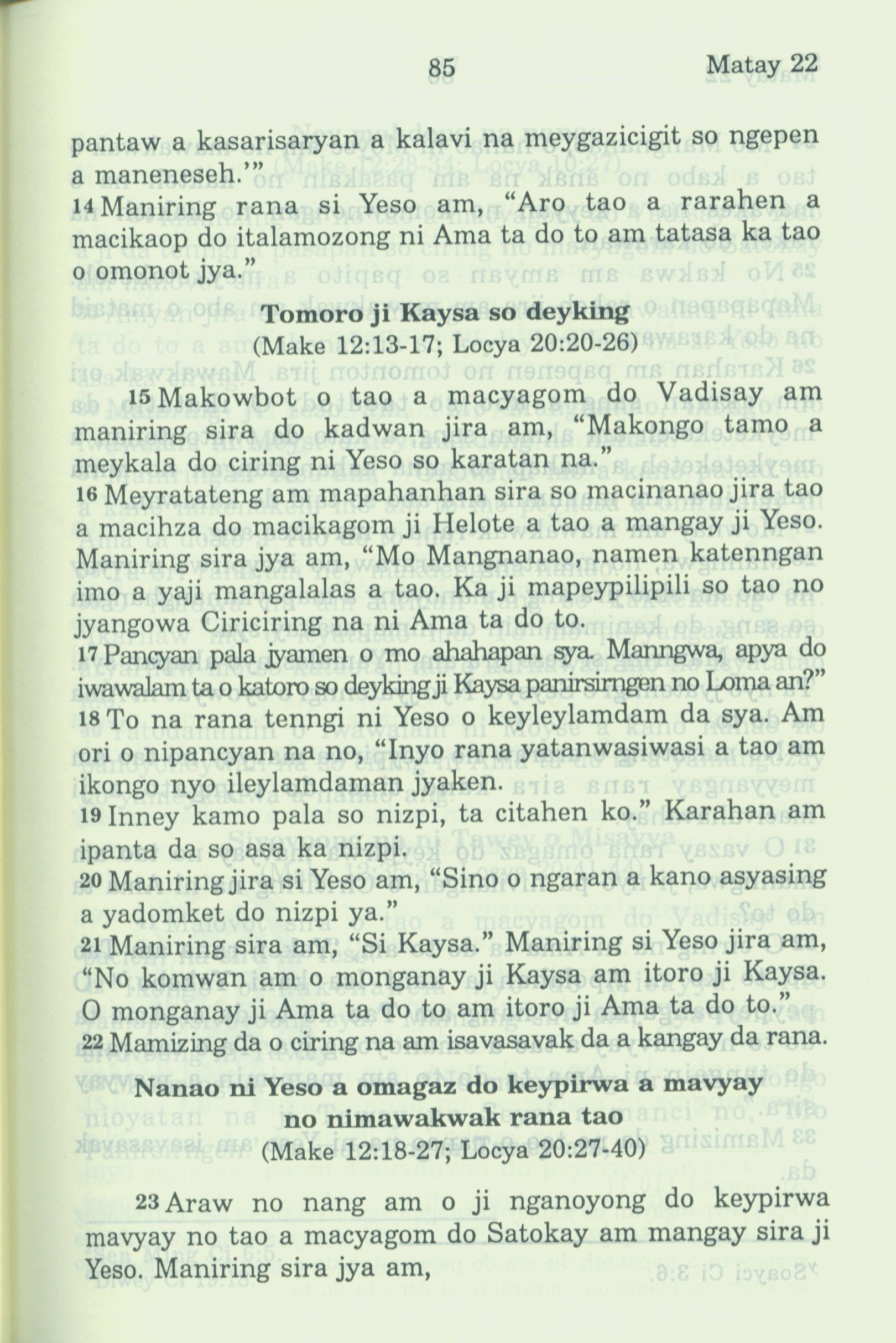 1994年新约全书 马太福音 22 章 14 节到 22 章 23 节