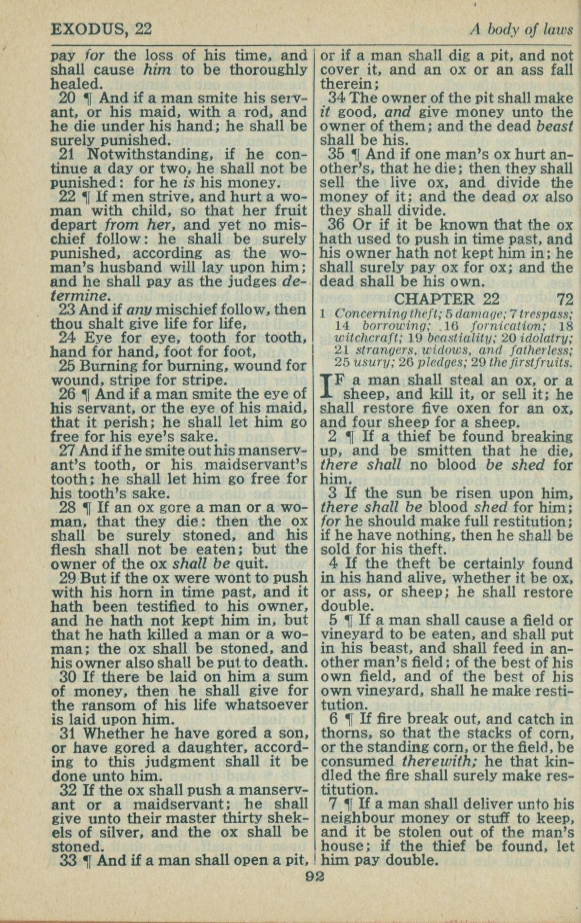1946年King James Version 出埃及记 21 章 20 节到 22 章 7 节