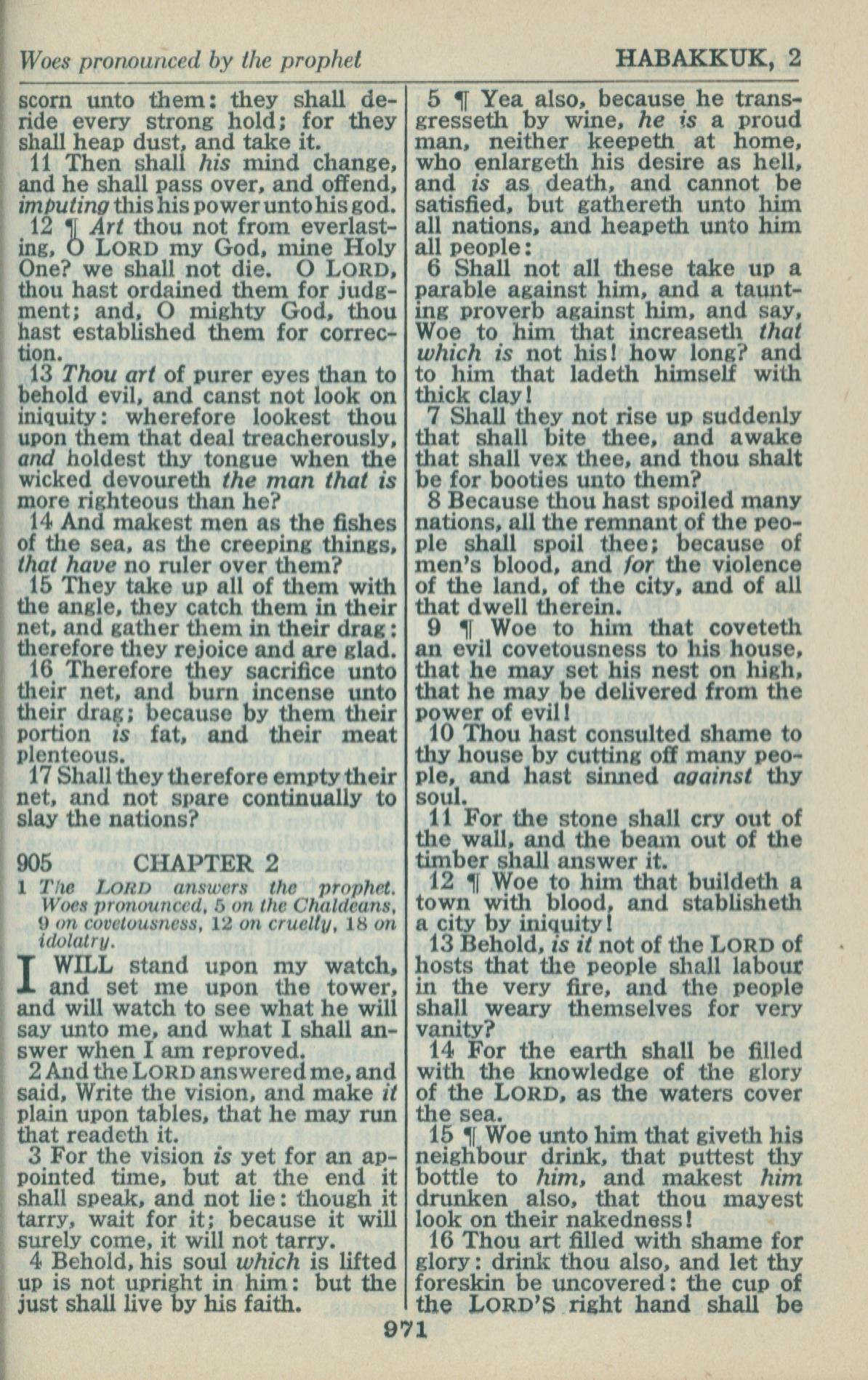 1946年King James Version 哈巴谷书 1 章 11 节到 2 章 16 节