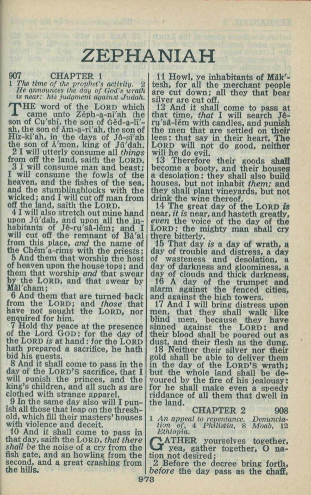 1946年King James Version 西番雅书 1 章 1 节到 2 章 2 节