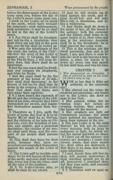 1946年King James Version 西番雅书 2 章 3 节到 3 章 8 节