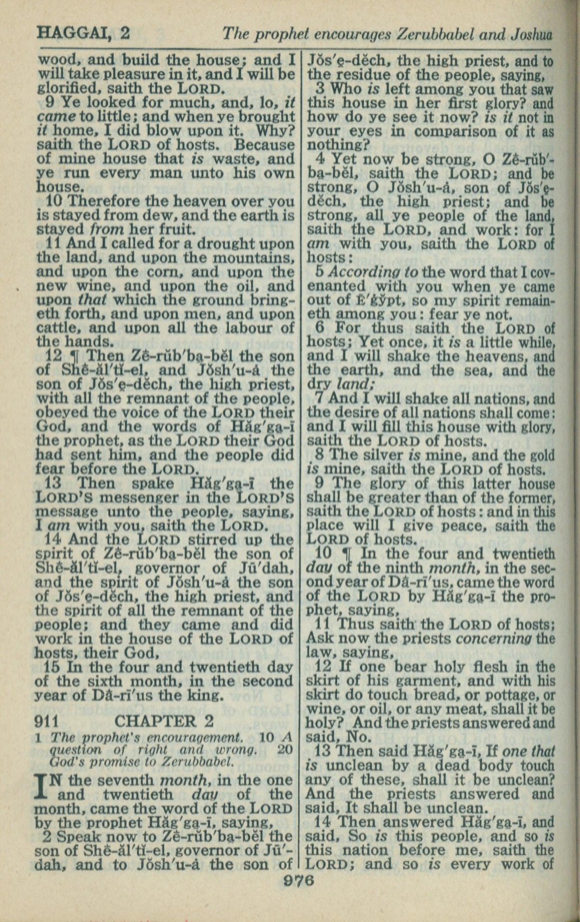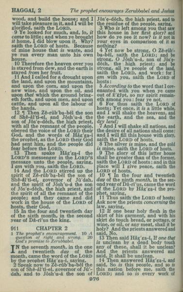1946年King James Version 哈该书 1 章 9 节到 2 章 14 节