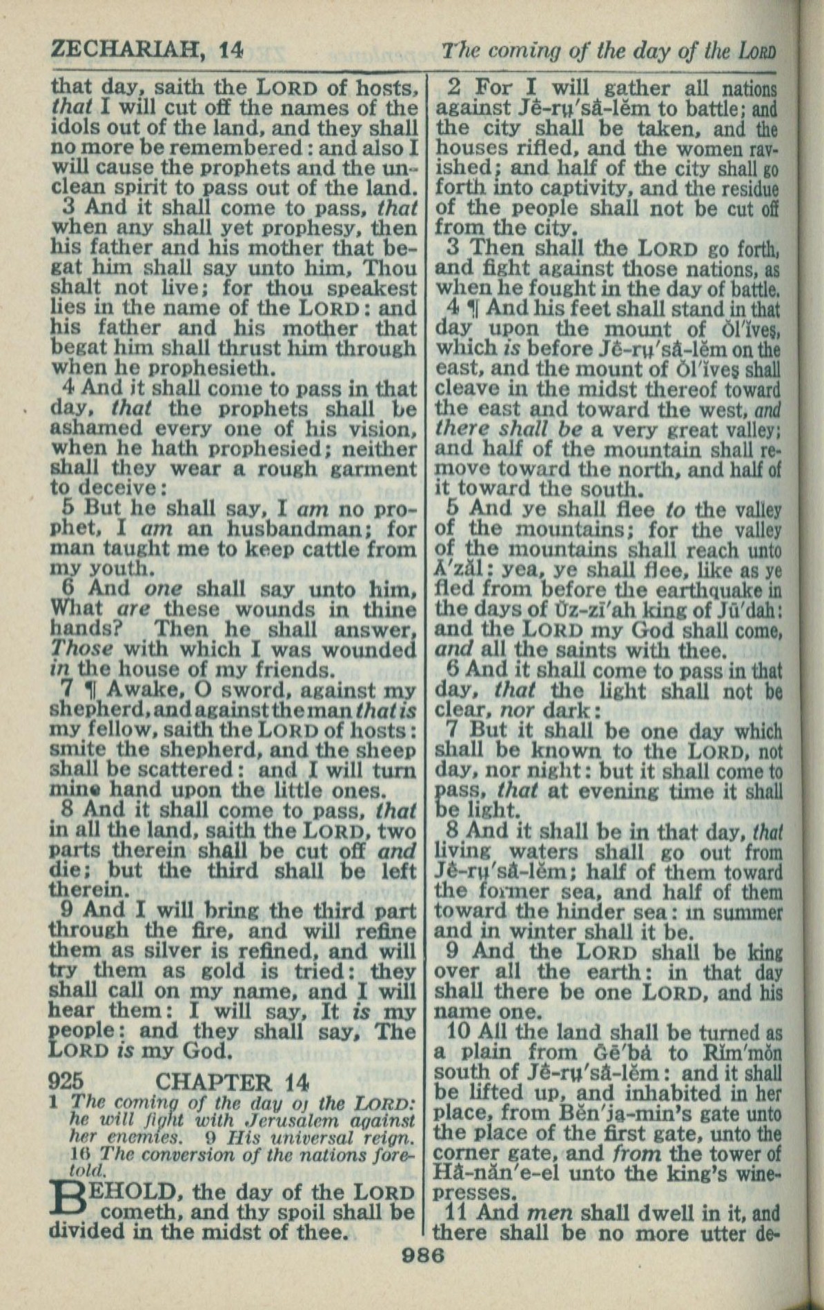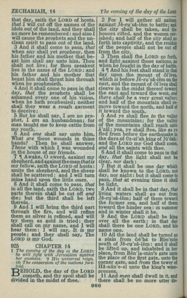 1946年King James Version 撒迦利亚书 13 章 3 节到 14 章 11 节