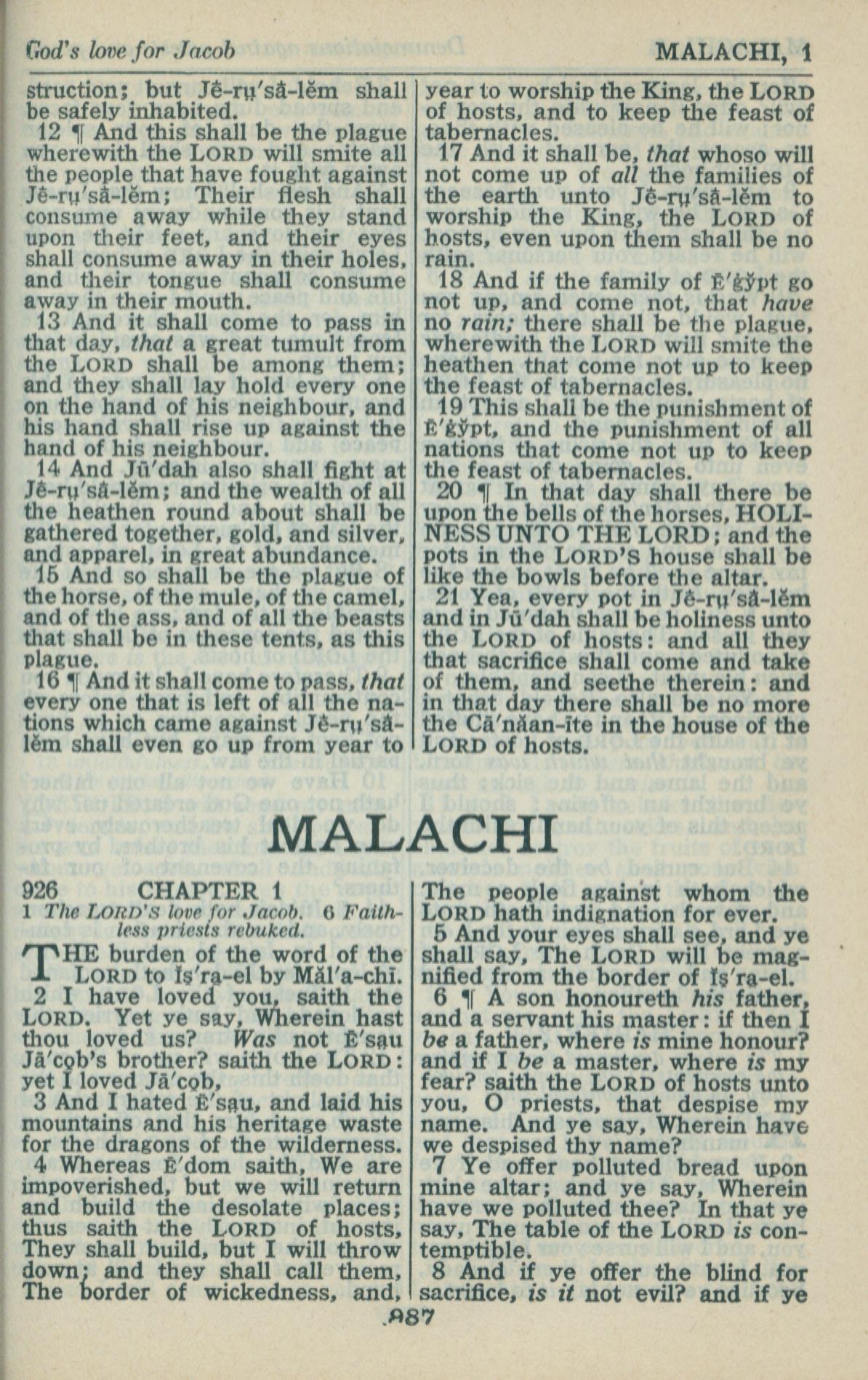 1946年King James Version 玛拉基书 1 章 1 节到 1 章 8 节