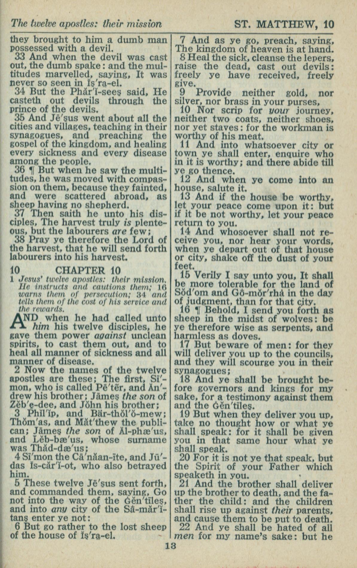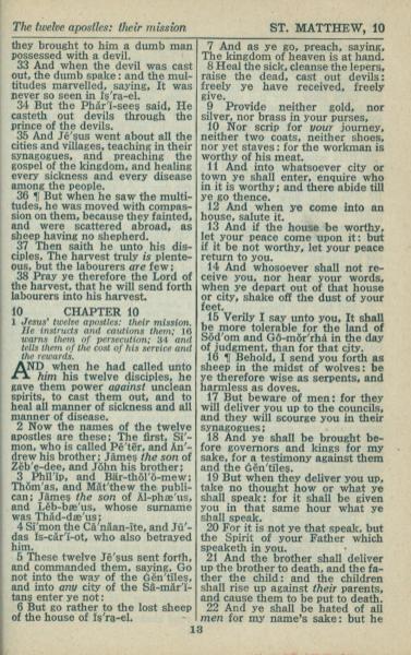 1946年King James Version 马太福音 9 章 33 节到 10 章 22 节
