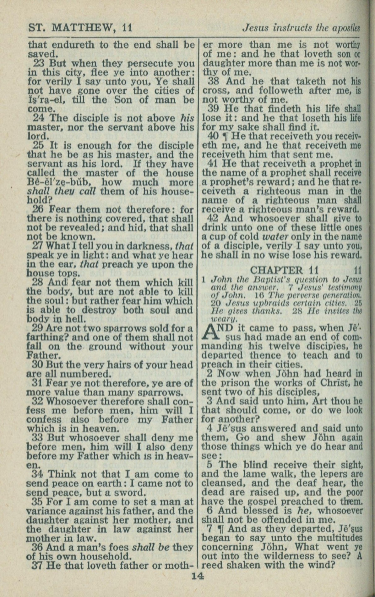 1946年King James Version 马太福音 10 章 23 节到 11 章 7 节