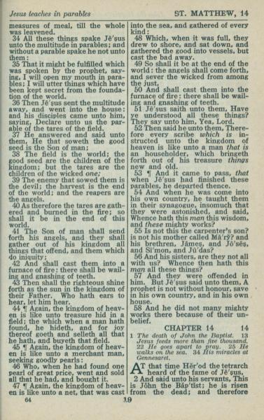 1946年King James Version 马太福音 13 章 34 节到 14 章 2 节