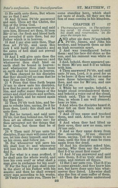 1946年King James Version 马太福音 16 章 15 节到 17 章 13 节