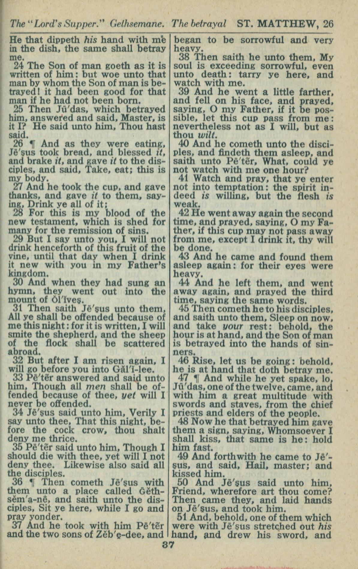 1946年King James Version 马太福音 26 章 24 节到 26 章 51 节