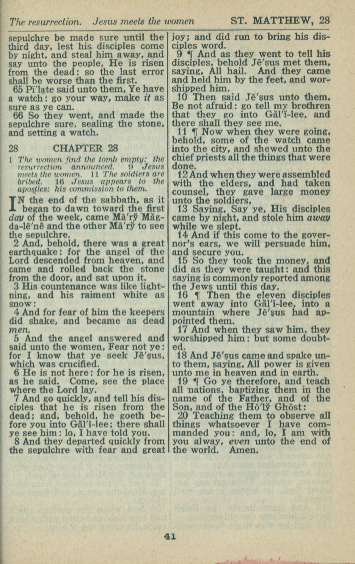 1946年King James Version 马太福音 27 章 65 节到 28 章 20 节