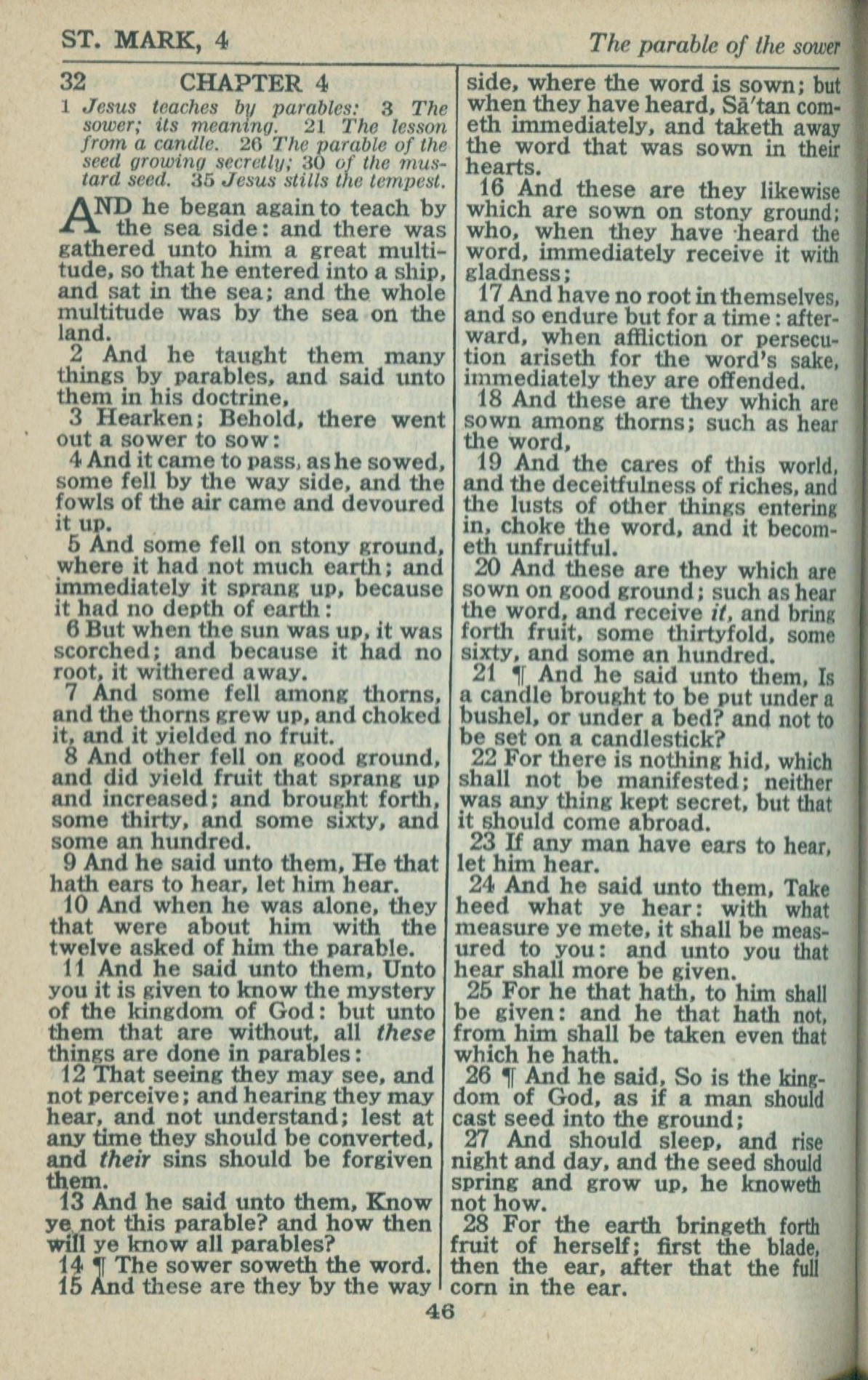 1946年King James Version 马可福音 4 章 1 节到 4 章 28 节
