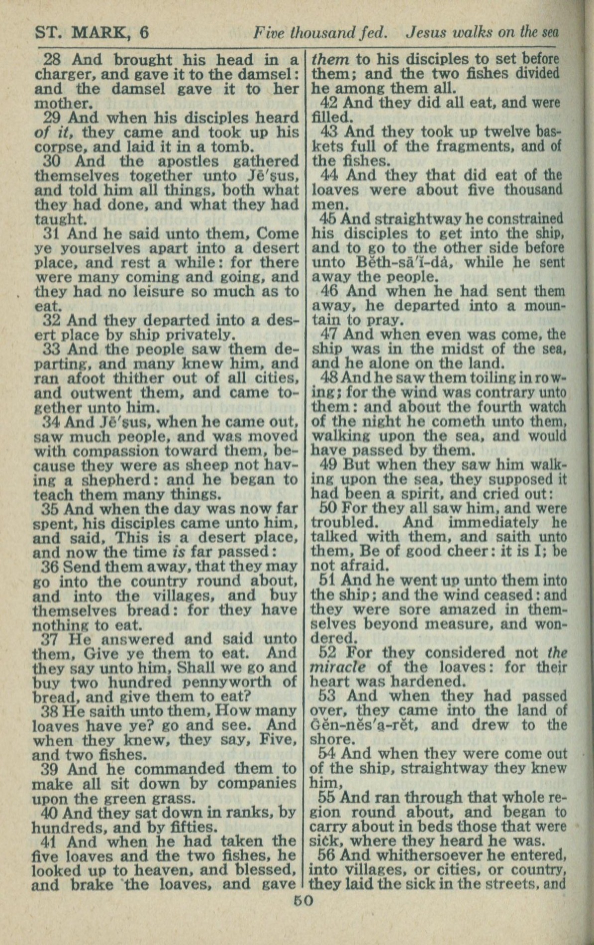 1946年King James Version 马可福音 6 章 28 节到 6 章 56 节