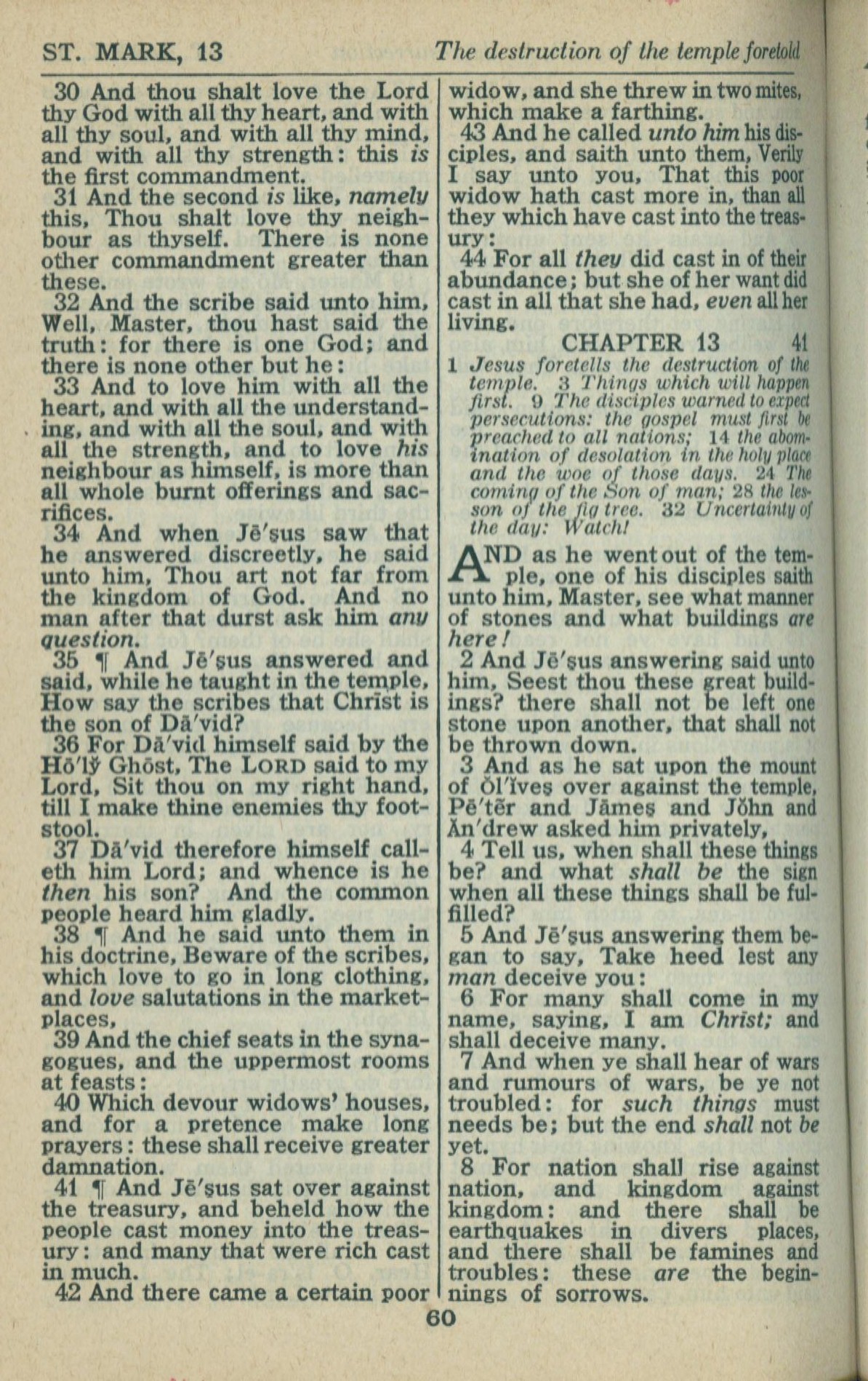 1946年King James Version 马可福音 12 章 30 节到 13 章 8 节
