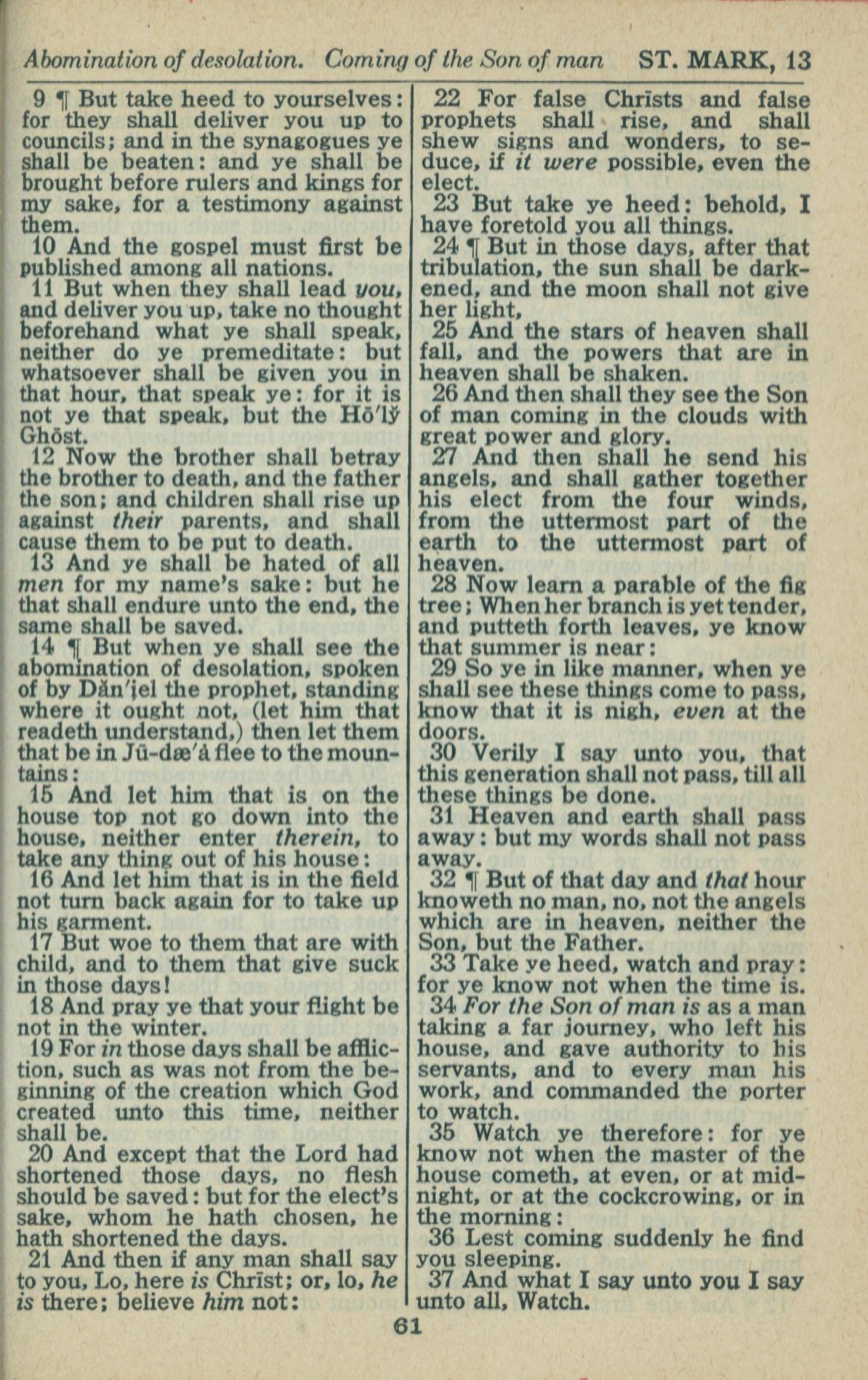 1946年King James Version 马可福音 13 章 9 节到 13 章 37 节