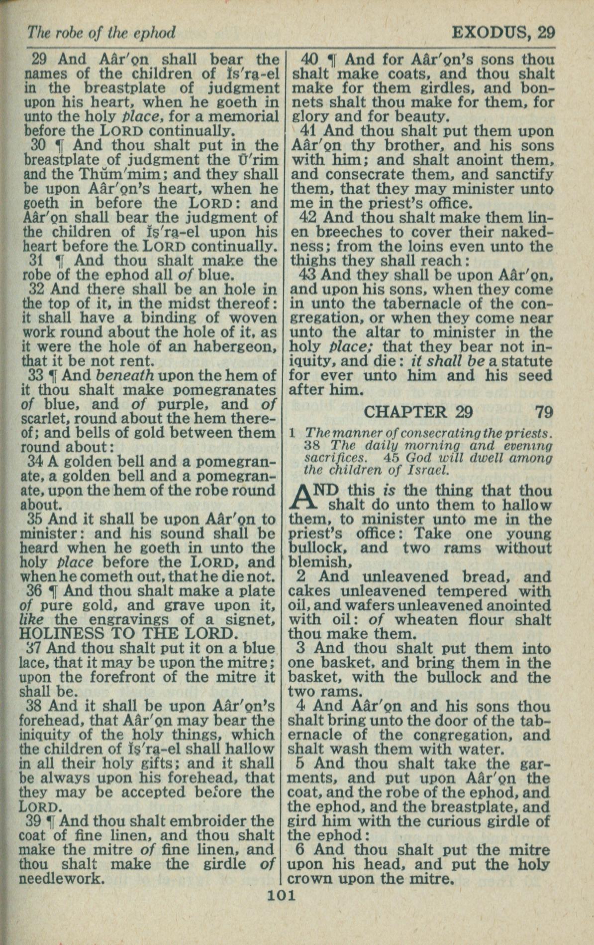 1946年King James Version 出埃及记 28 章 29 节到 29 章 6 节
