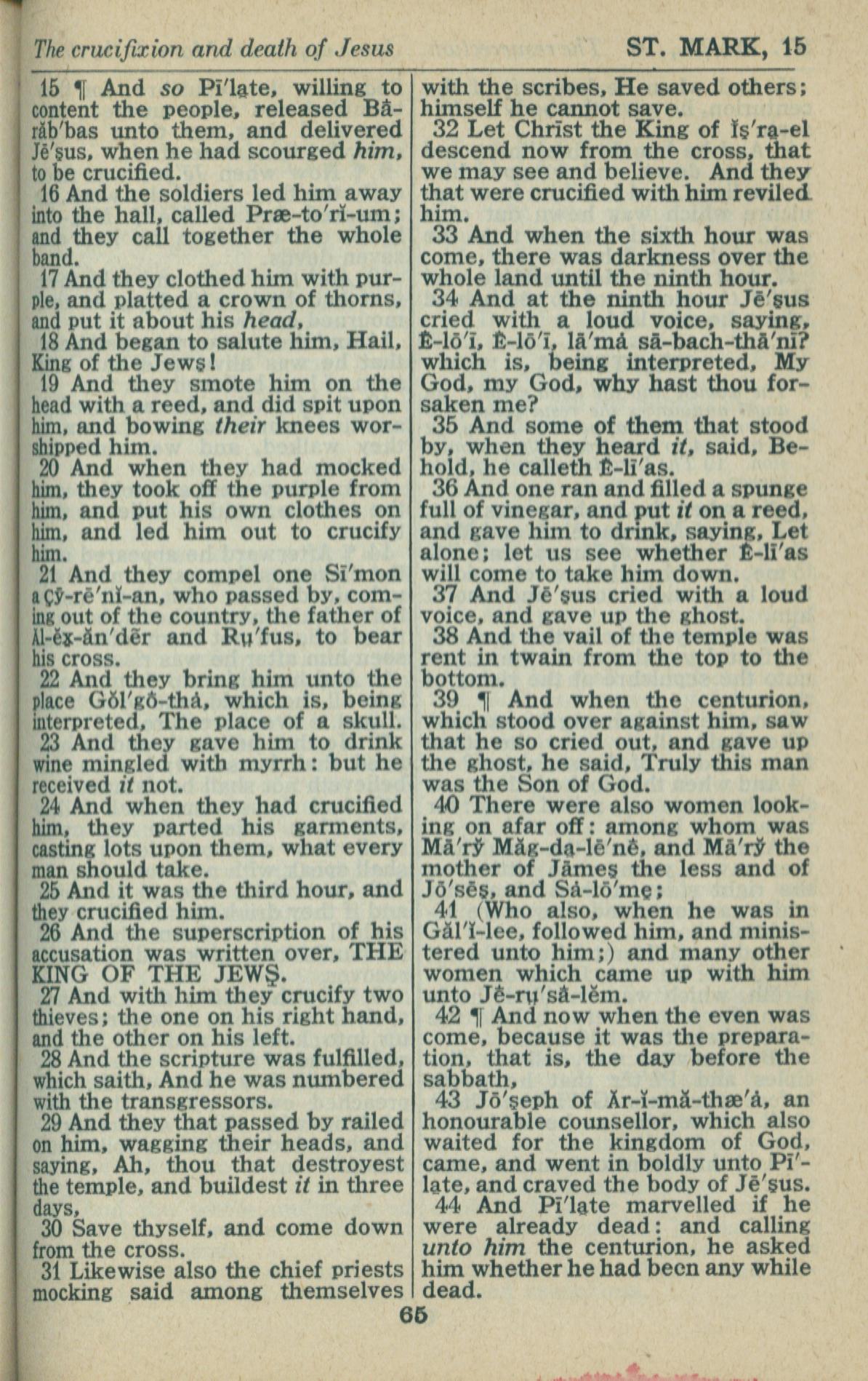 1946年King James Version 马可福音 15 章 15 节到 15 章 44 节