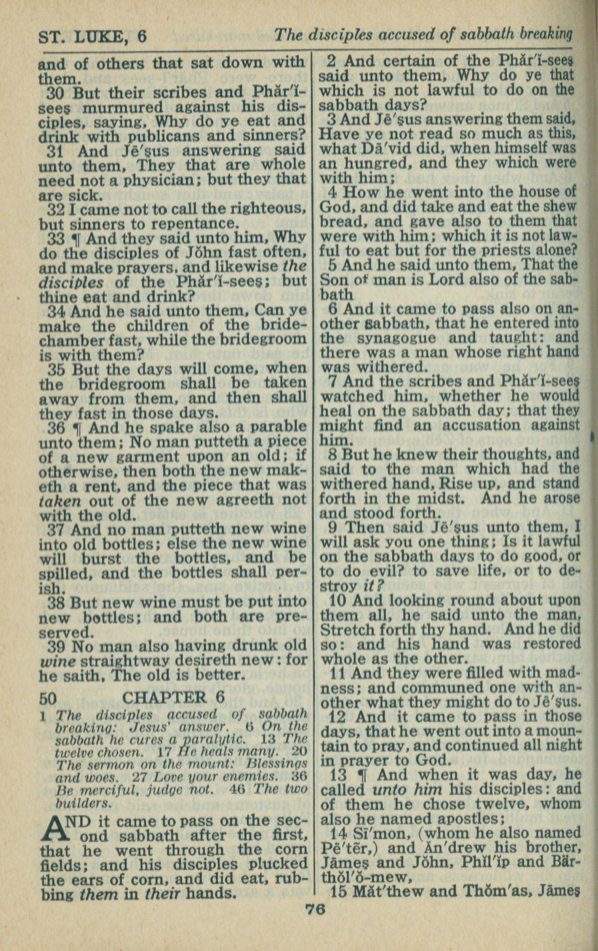 1946年King James Version 路加福音 5 章 30 节到 6 章 15 节