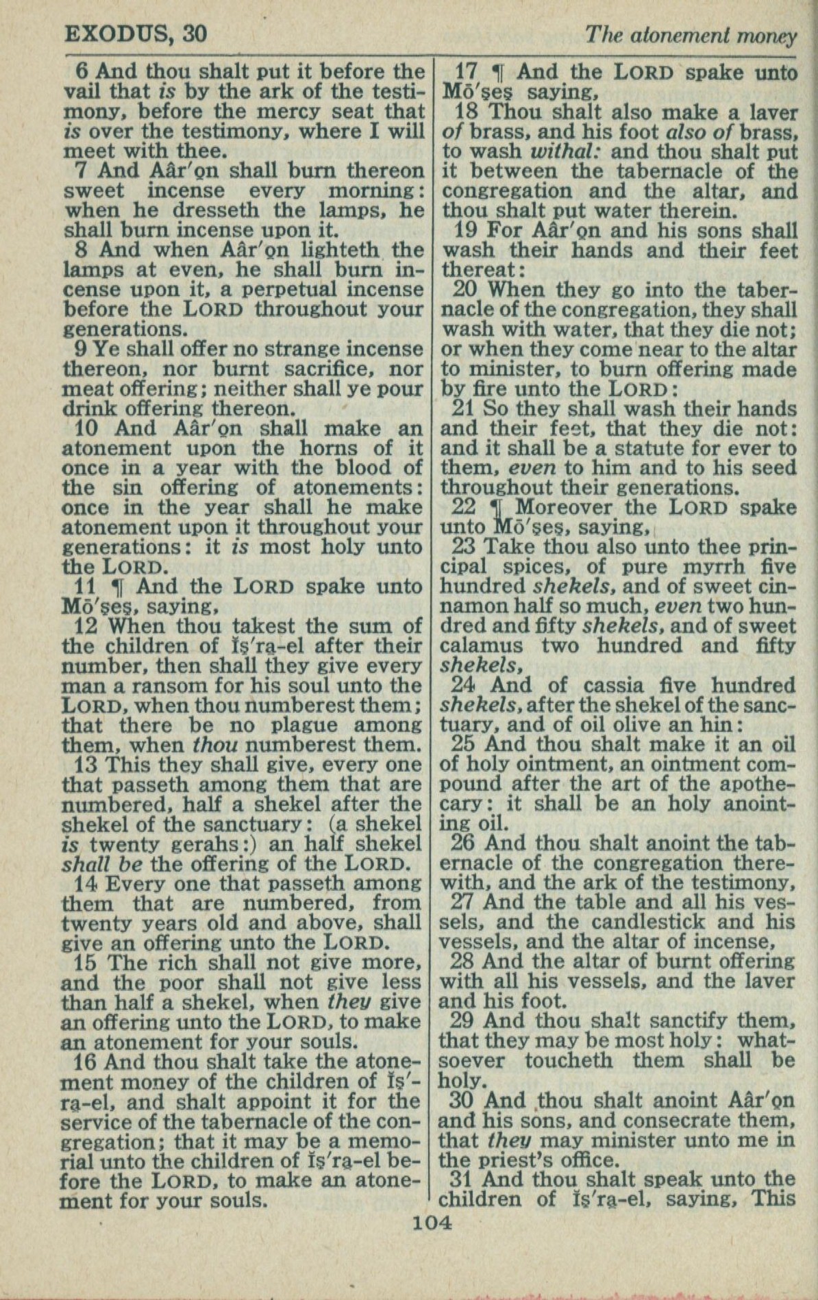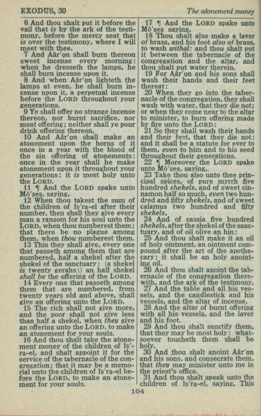 1946年King James Version 出埃及记 30 章 6 节到 30 章 31 节