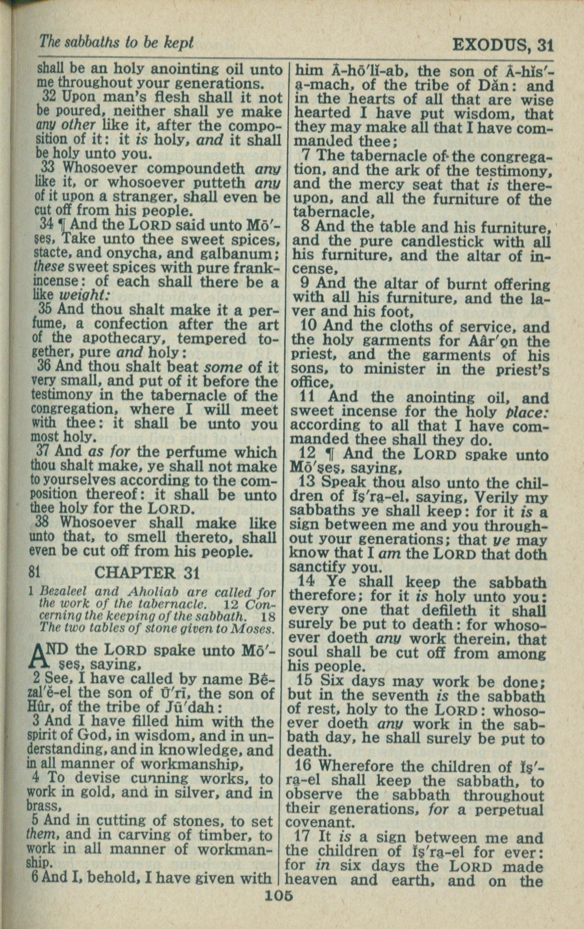 1946年King James Version 出埃及记 30 章 32 节到 31 章 17 节