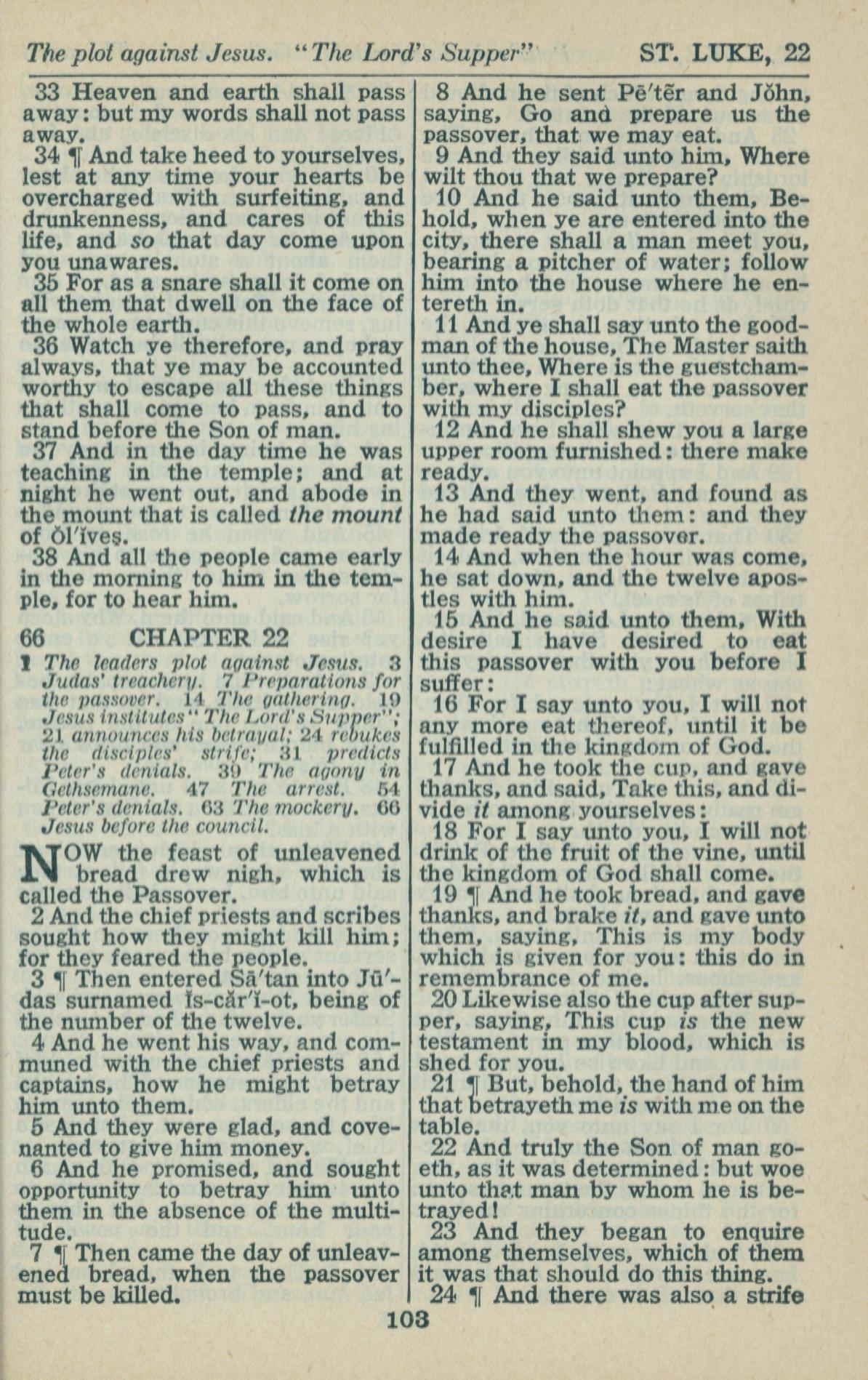 1946年King James Version 路加福音 21 章 33 节到 22 章 24 节