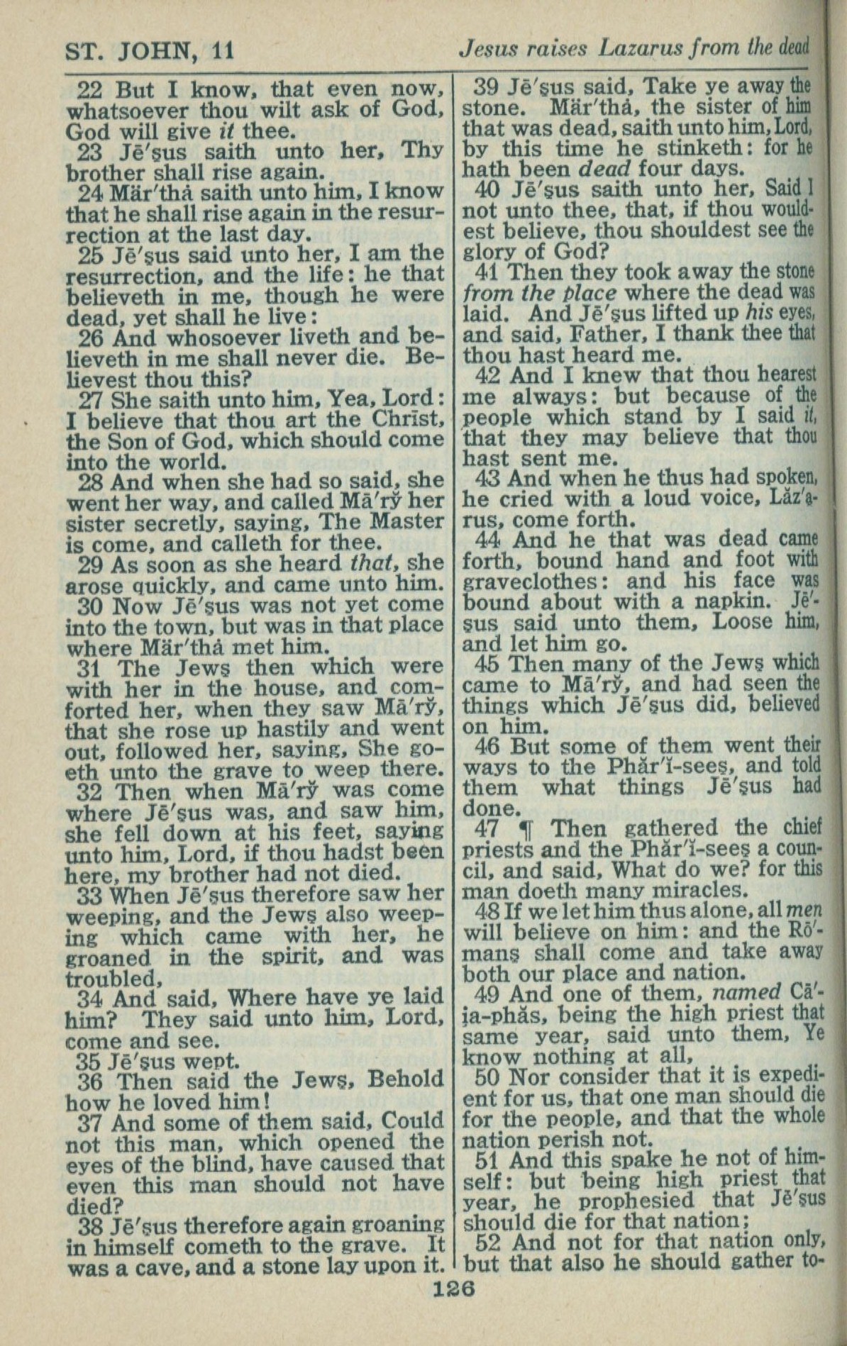 1946年King James Version 约翰福音 11 章 22 节到 11 章 52 节