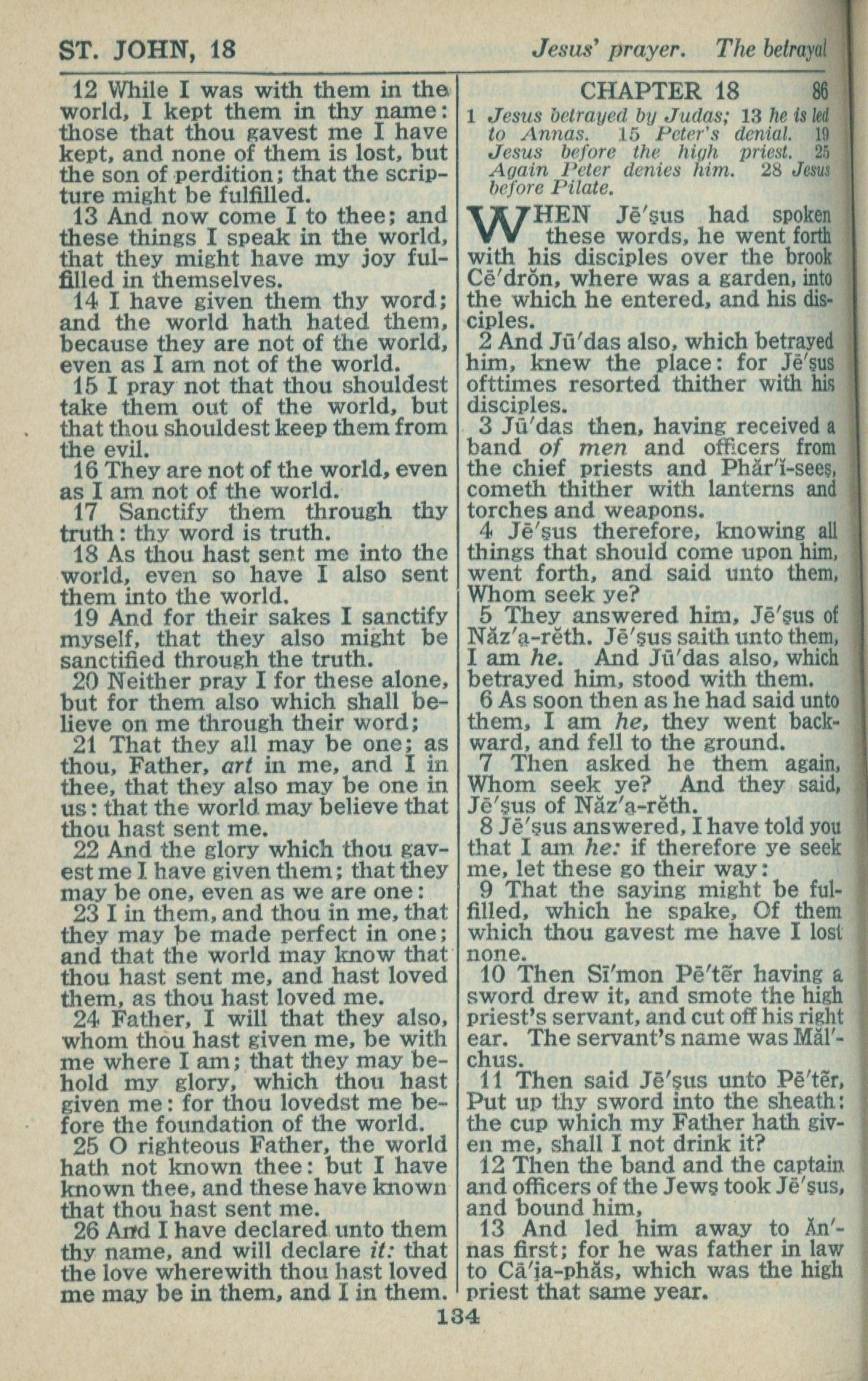 1946年King James Version 约翰福音 17 章 12 节到 18 章 13 节