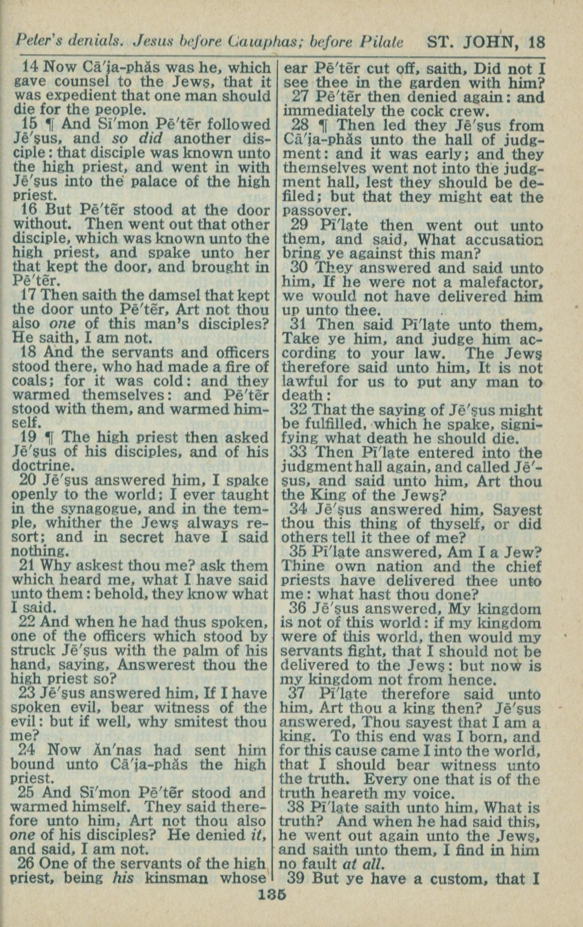 1946年King James Version 约翰福音 18 章 14 节到 18 章 39 节