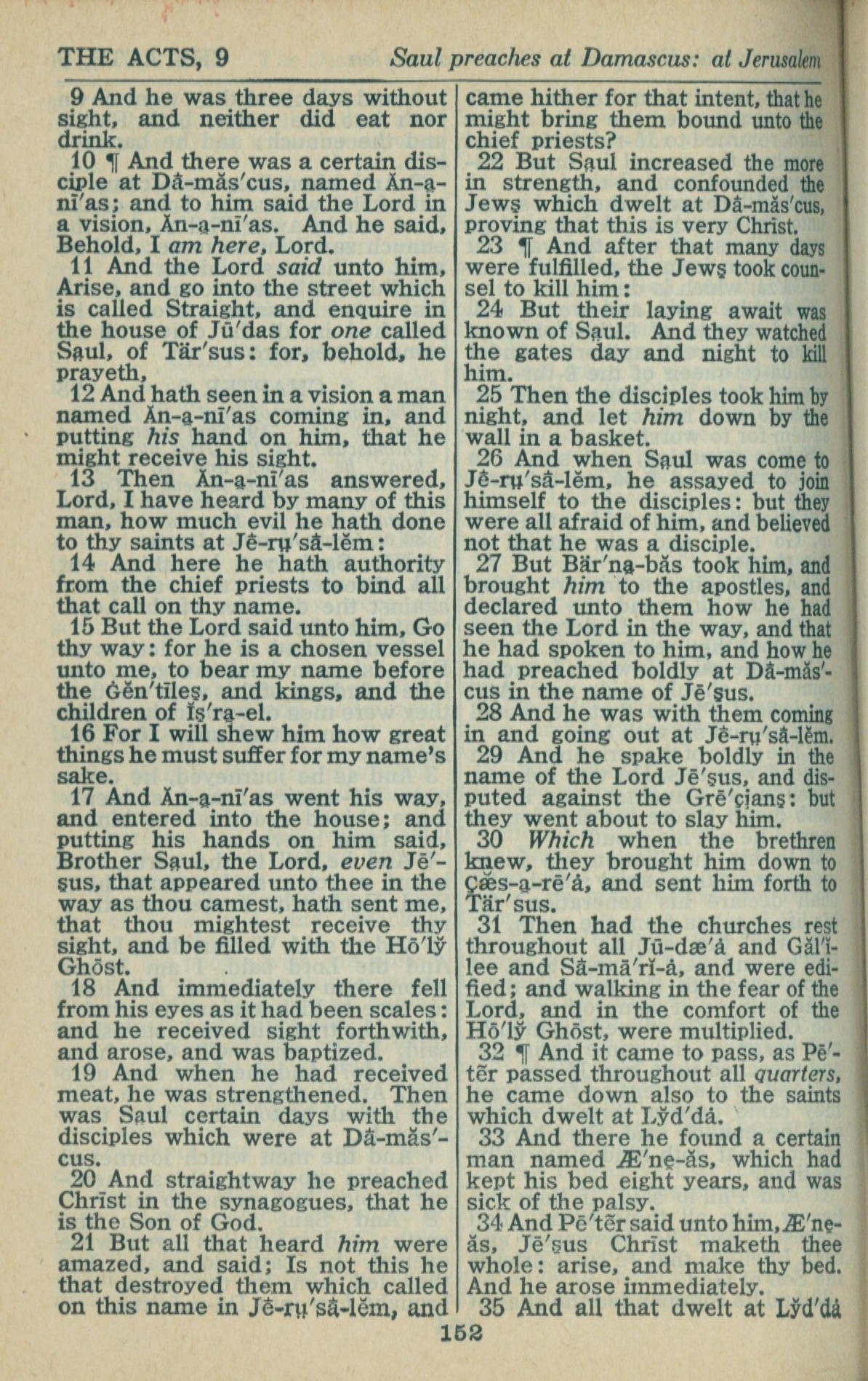 1946年King James Version 使徒行传 9 章 9 节到 9 章 35 节