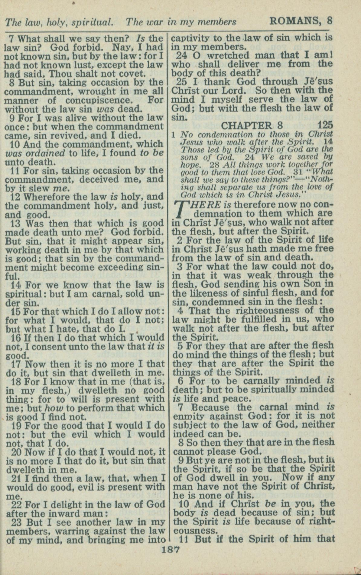 1946年King James Version 罗马书 7 章 7 节到 8 章 11 节