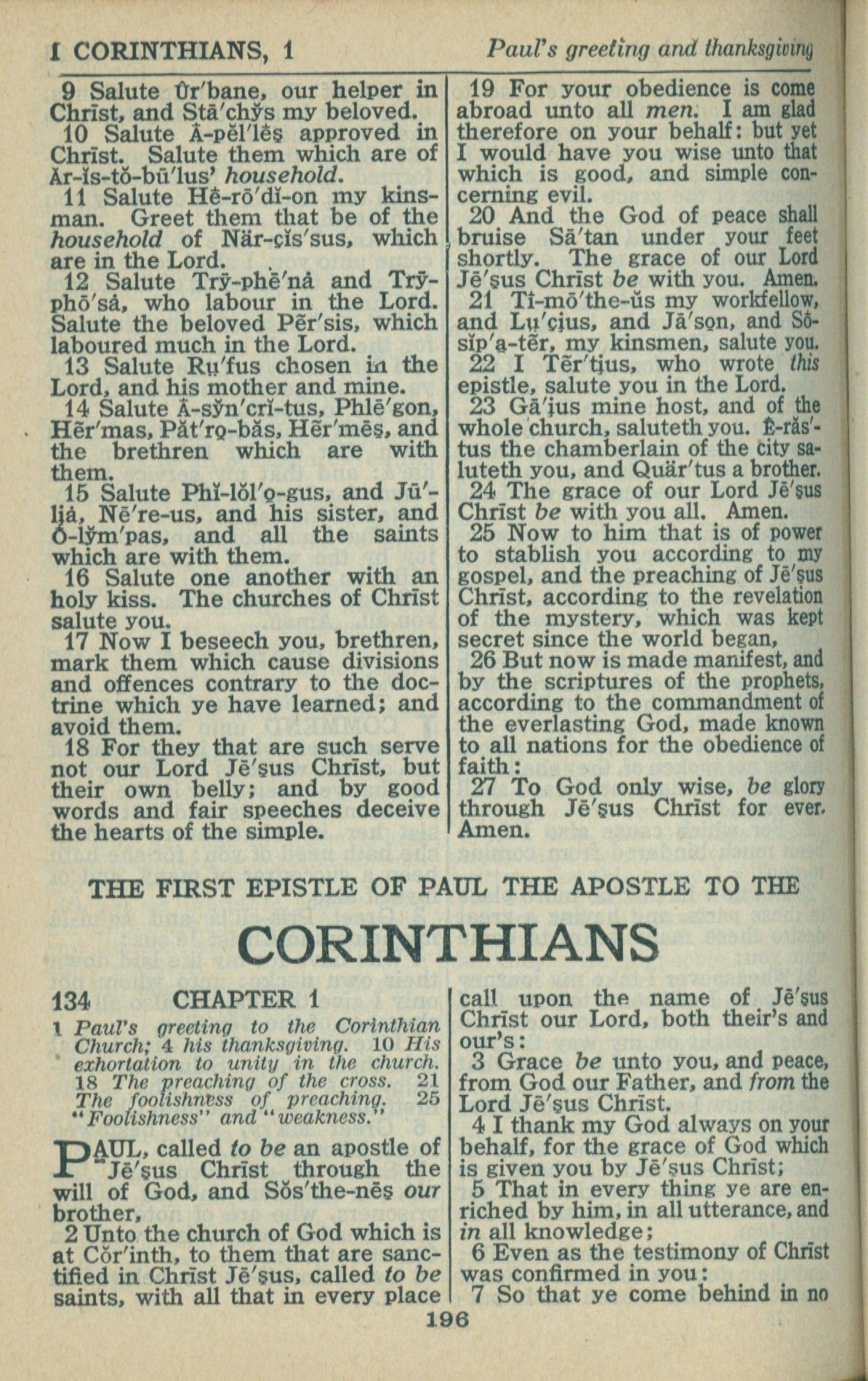 1946年King James Version 哥林多前书 1 章 1 节到 1 章 7 节